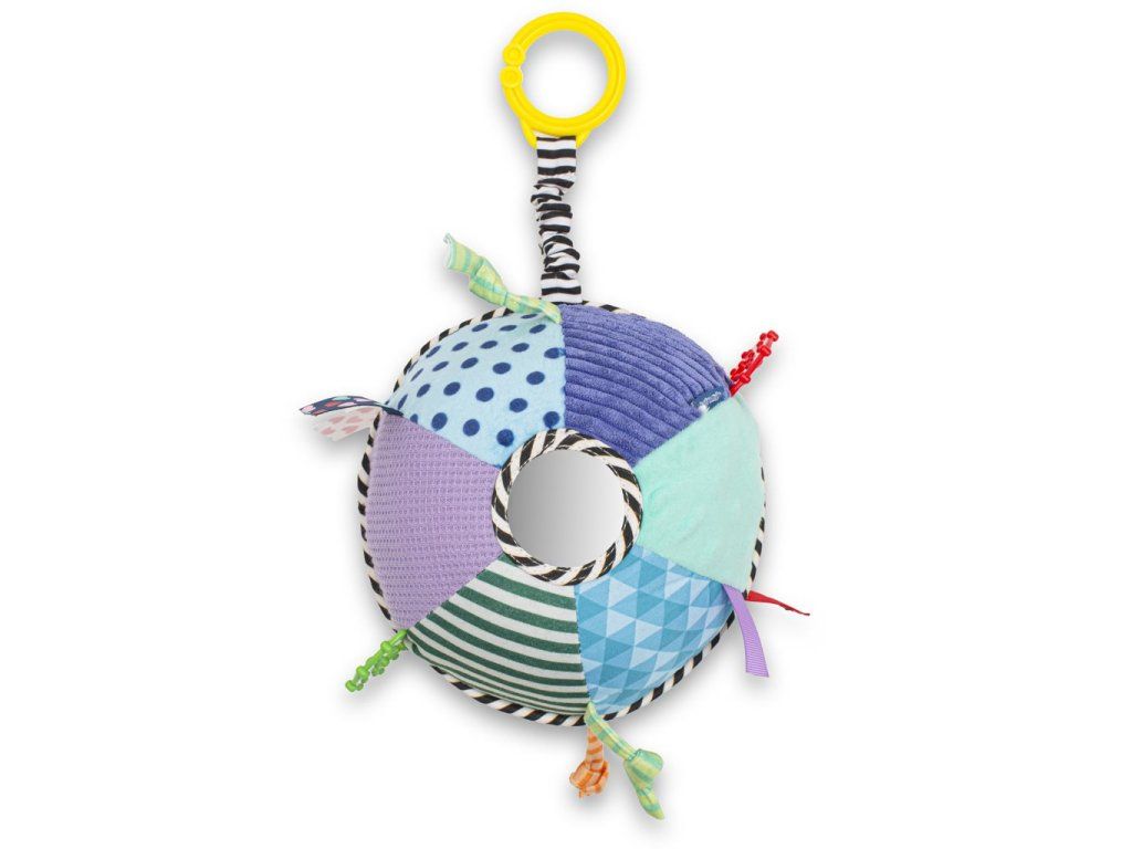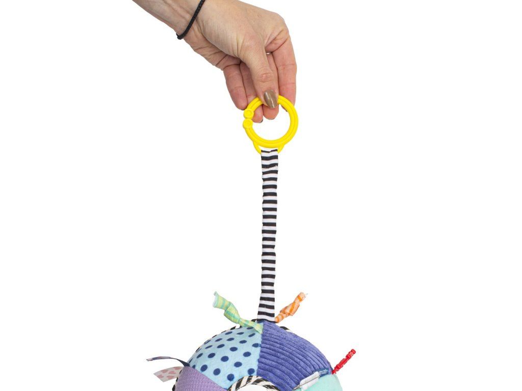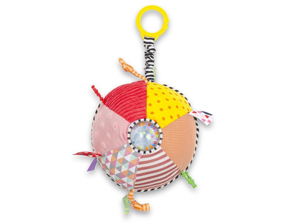 Farebná plyšová vzdelávacia hračka Baby Mix. Hračka učí vaše dieťa rozpoznávať tvary a farby. Hračku možno pomocou klipov pripevniť na kočík alebo postieľku. Hračka má hrkálky. Vhodné pre deti od prvých dní života