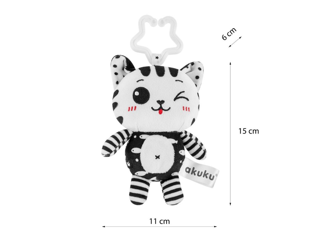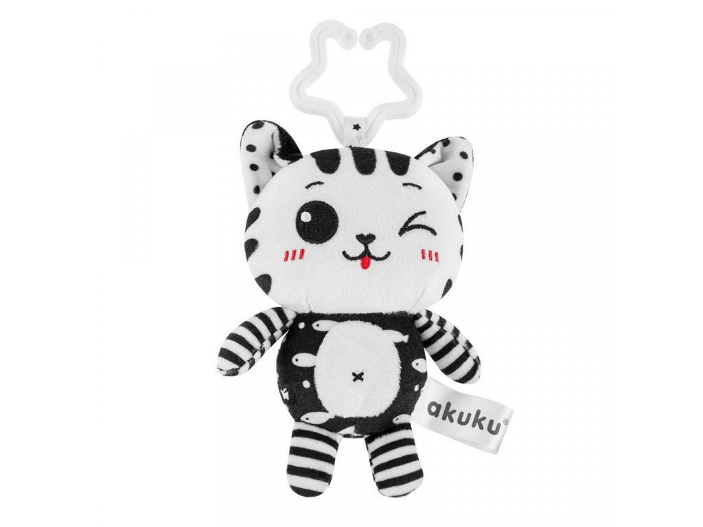 Plyšová hračka s hrkálkou Akuku Mačička čiernobiela - 56526