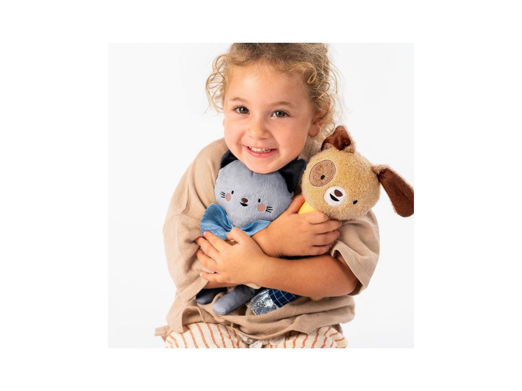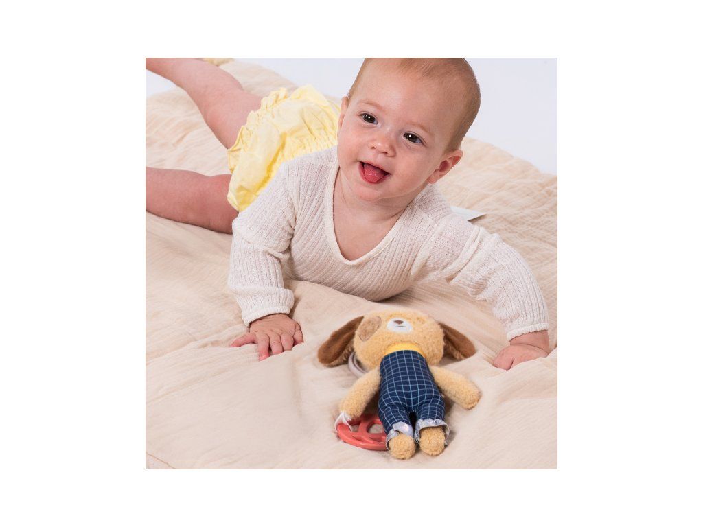 Závesná plyšová hračka v podobe rozkošného psíka Daniela pri pohybe hrká a pri stlačení šuštia. Súčasťou hračky je aj pružné hryzátko. Vďaka závesnému krúžku hračku ľahko pripevníte napr. na autosedačku či kočík.