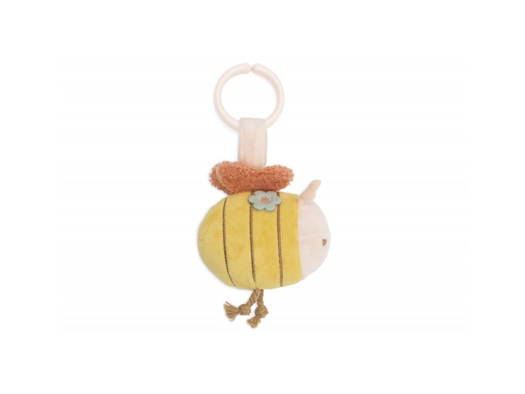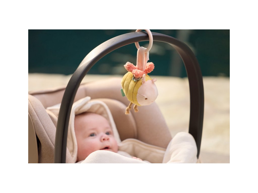 Nežná závesná hračka v podobe včielky je ideálnym spoločníkom pre vaše bábätko na prechádzkach a výletoch. Hračka z mäkkého príjemného materiálu pri pohybe jemne cinká a pri stlačení šuštia. Vďaka plastovému krúžku ju ľahko pripevníte na kočík alebo autosedačku.