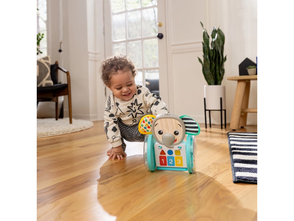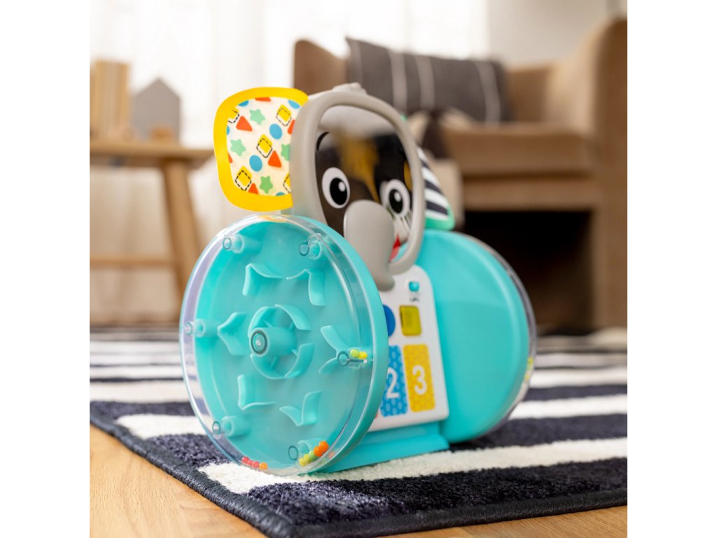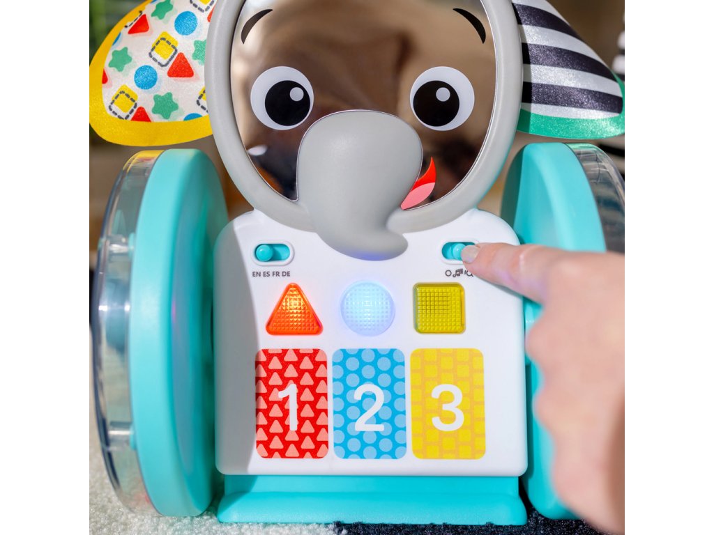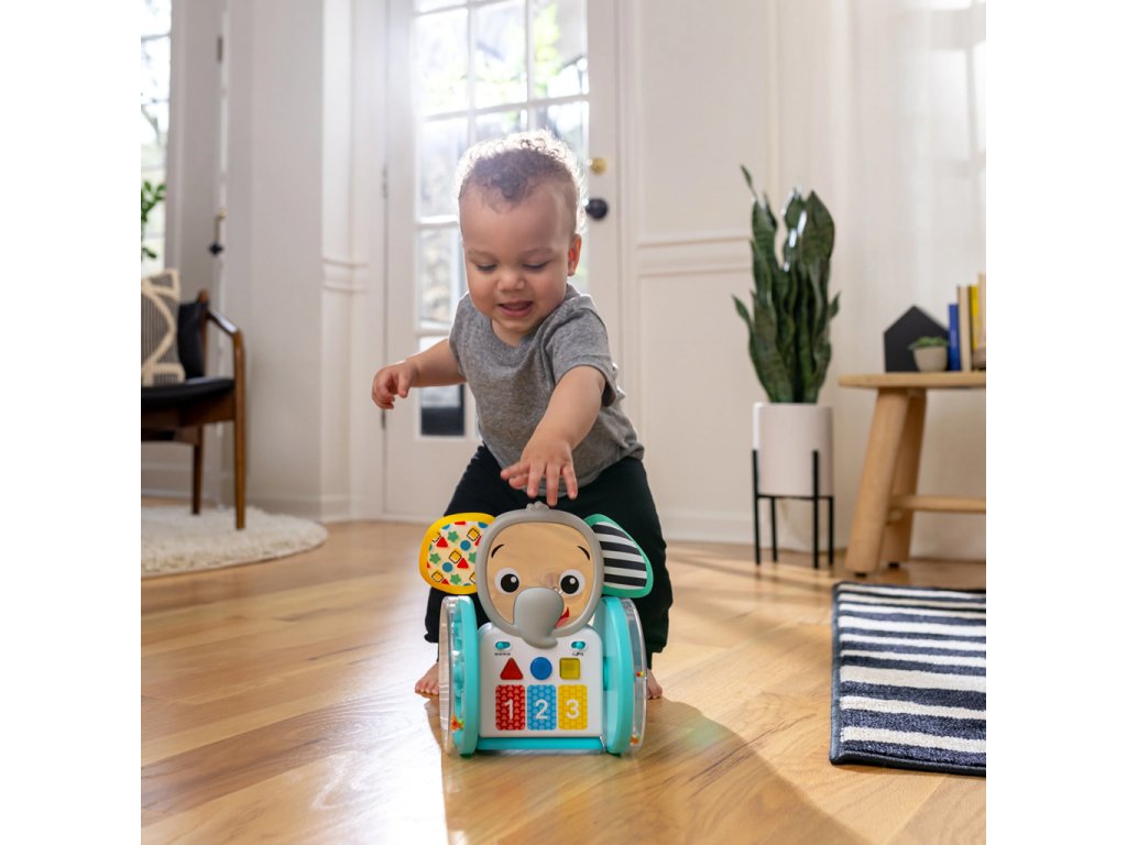 Váľajte sa, skúmajte a učte sa s interaktívnou plaziacou hračkou Baby Einstein Chase & Tap Earl. Táto rolovacia hračka 2 v 1 podporuje zrakové a hrubé motorické zručnosti dieťaťa počas plazenia alebo hry v sede.2 polohy: Zdvihnite stojan a premeňte Earla na rolovaciu hračku, ktorá povzbudí dieťa, aby naháňalo alebo plazilo sa za slonom Earlom! Keď sa dieťatko naučí sedieť, stlačte tlačidlo Baby Einstein, aby ste zaistili výsuvný stojan hračky a Earla zastavte, aby sa mohol hrať v sede.