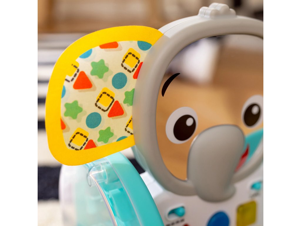 Earl hrá viac ako 50 fráz, zvukov a melódií, aby zaujal dieťa. Bábätká vo veku 6 mesiacov a staršie sa budú radi pozerať do sebaobjavovacieho zrkadla a môžu si budovať jemné motorické zručnosti, keď budú klepať na klávesy alebo otáčať kolieskami, aby počuli hrkajúce zvuky. Vysoko kontrastné vzory zabezpečujú vizuálny vývoj. Obsahuje 3 AAA batérie.