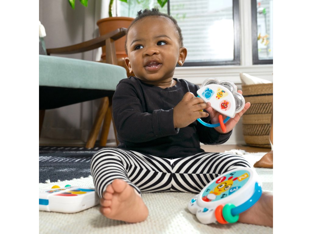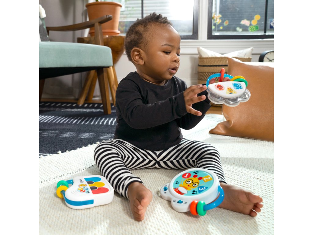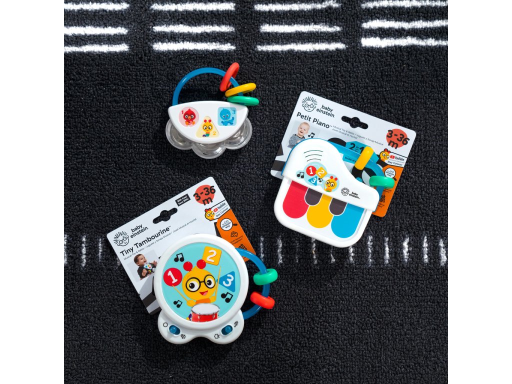 Bábätká si zamilujú hranie, poklepávanie a trasenie s hudobnými objavmi v súprave hudobných hračiek Baby Einstein Small Symphony, ktorá obsahuje 3 nástroje: