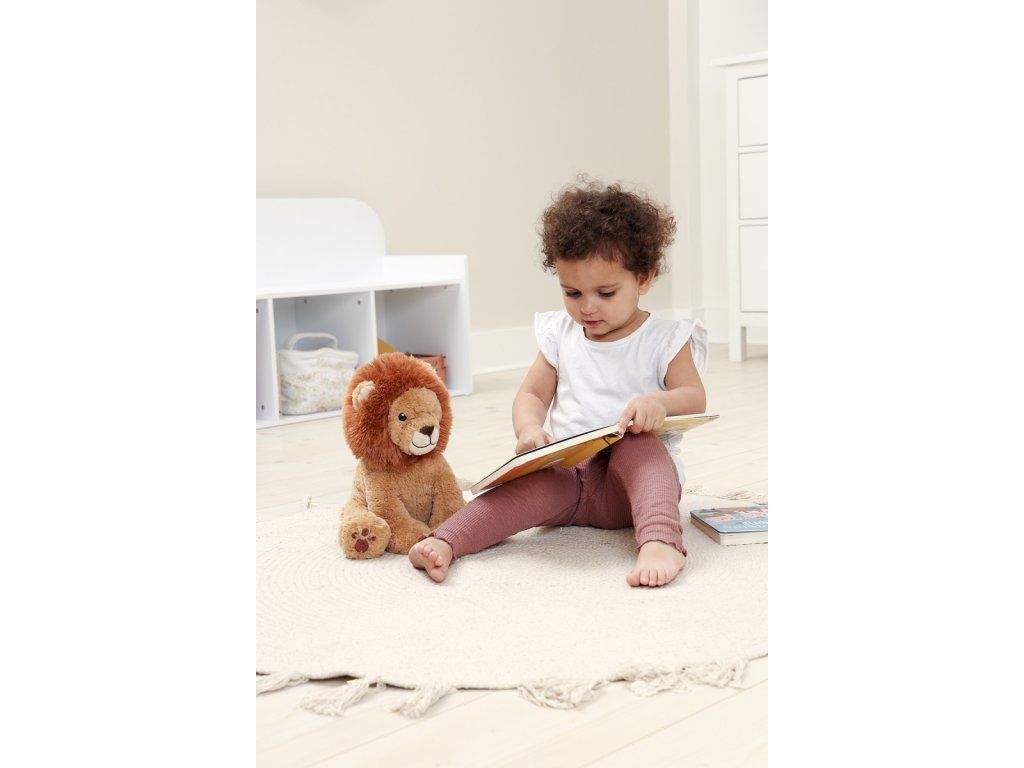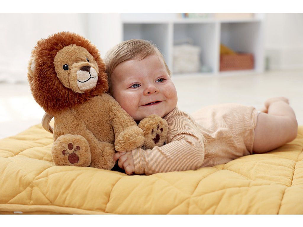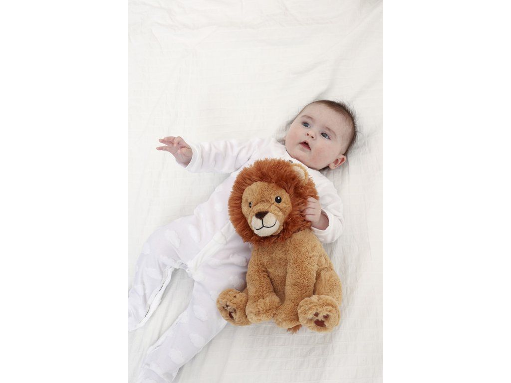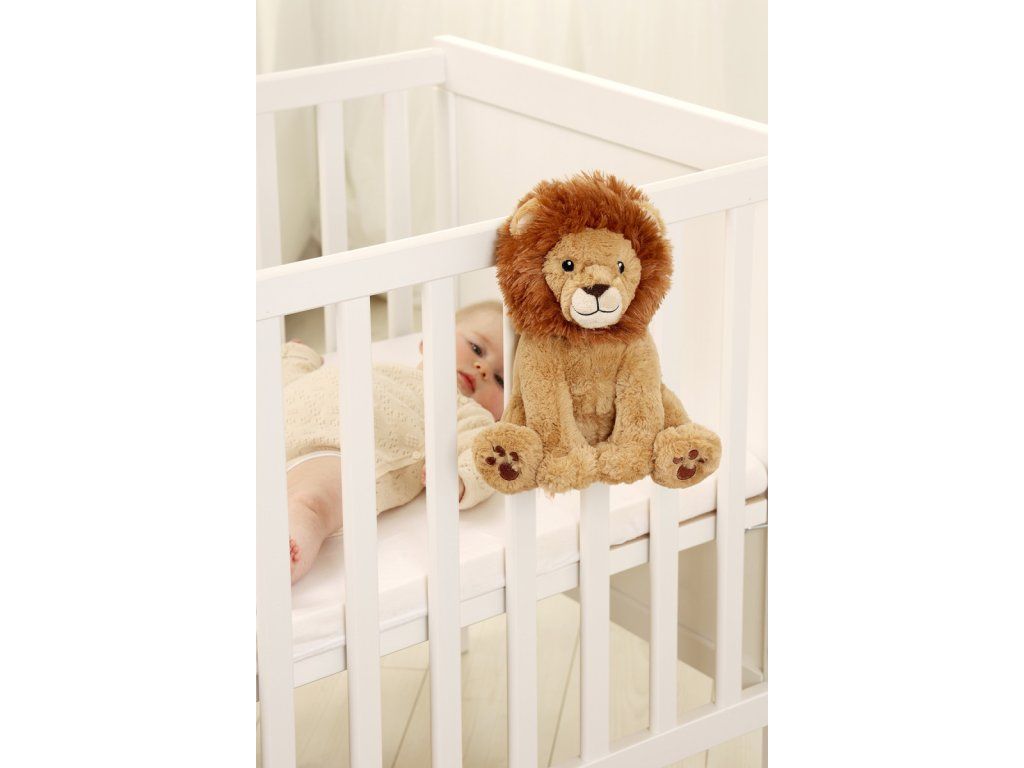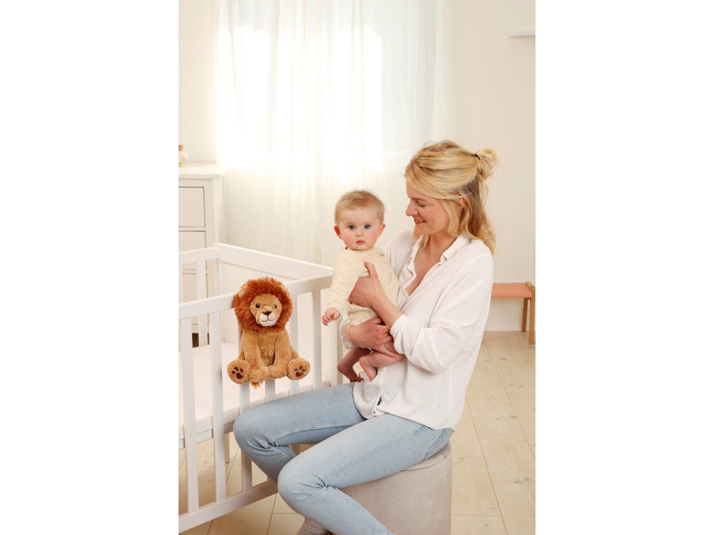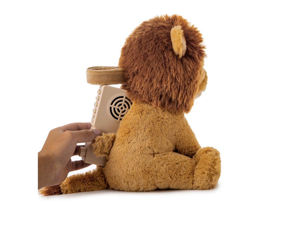 S 8 upokojujúcimi zvukmi a melódiami, z ktoré si môžete vybrať, bude vaše dieťa prevezené do krajiny snov stlačením tlačidla! Lev má tiež zapínanie na suchý zips, vďaka ktorému môžete ľahko pripojiť najnovšieho spoločníka vášho dieťaťa k akejkoľvek postieľke. A keď Lev potrebuje kúpeľ, vyberte reproduktor a hoďte maskota do bielizne.