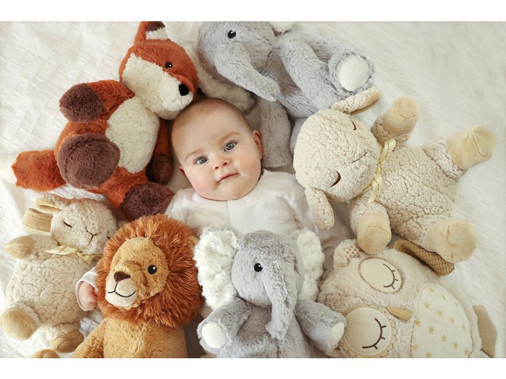 Tento milý plyšový kamarát je dokonalým spoločníkom vďaka skrytému zvukovému panelu, ktorý obnovuje osem upokojujúcich zvukových možností, aby vášmu drobčekovi priniesol pokojný a relaxačný spánok.