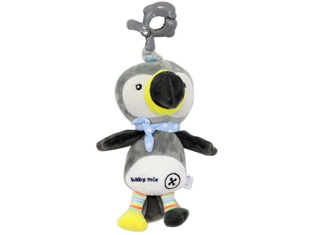 Detská plyšová hračka s hracím strojčekom a klipom Baby Mix Tukan sivý - 40080