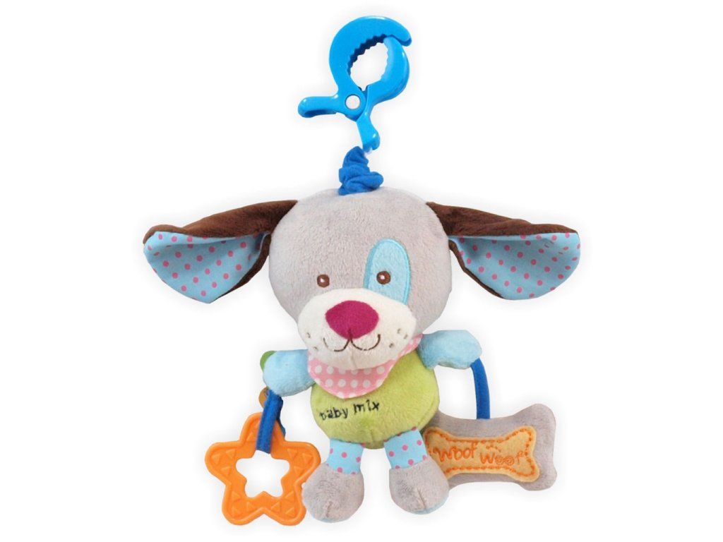 Edukačná hrajúca plyšová hračka s klipom Baby Mix Psík - 21021