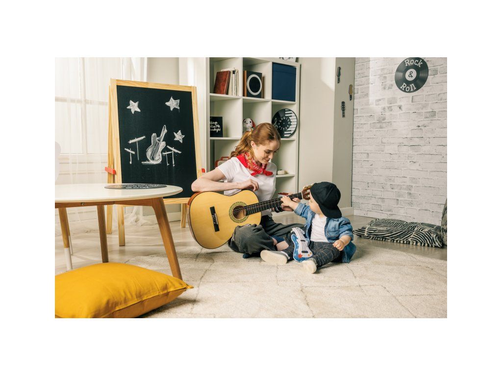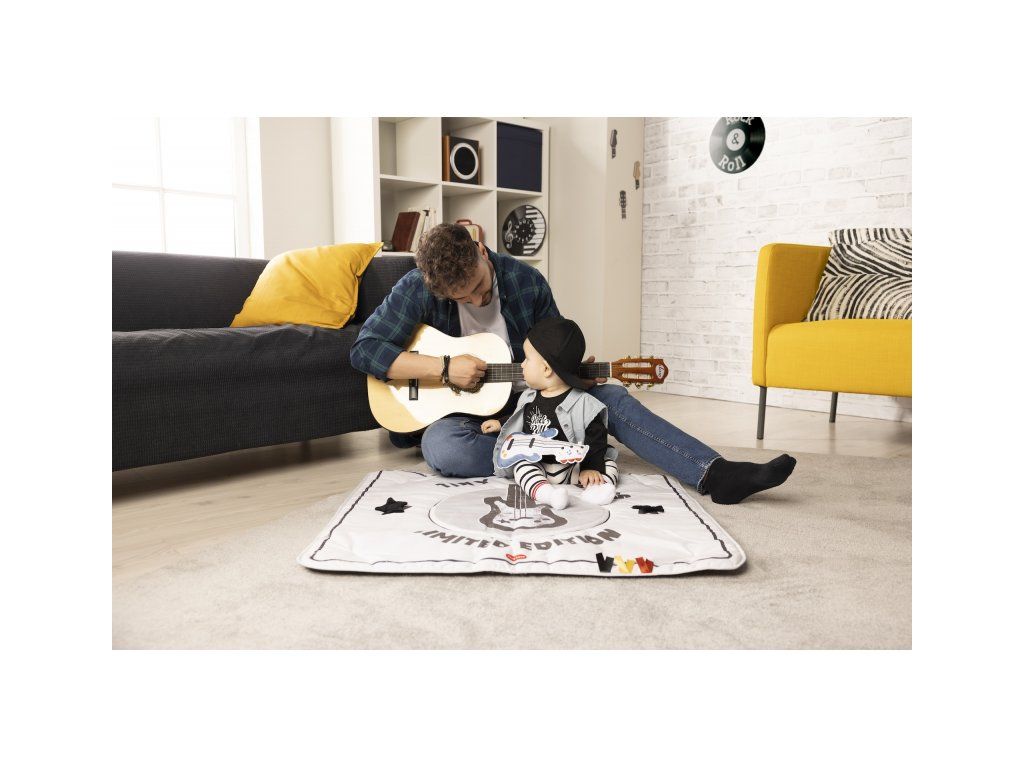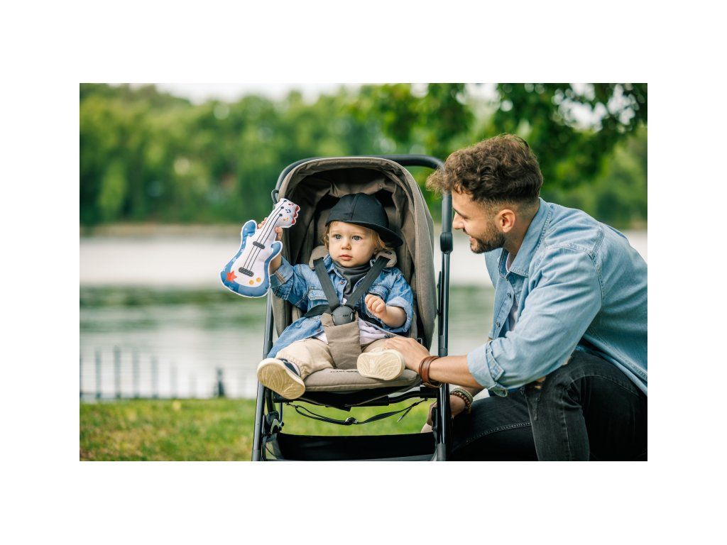 Prvá gitara pre vášho malého rockera či rockerku je vyrobená z mäkkého textilného materiálu a po stlačení prehráva 7 rôznych rockových melódií a zvukov. Vďaka plastovému krúžku je možné ju zavesiť na autosedačku či kočík, aby mohla vaše dieťa zabaviť aj na cestách. Gitara je ideálna aj pre hranie na brušku.