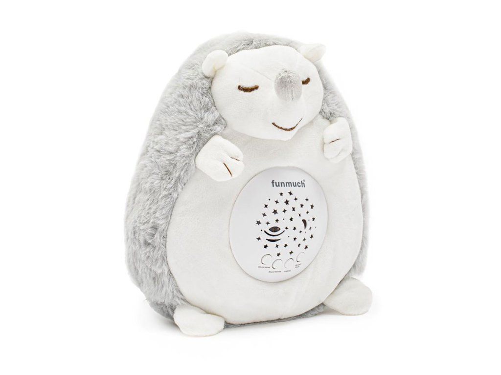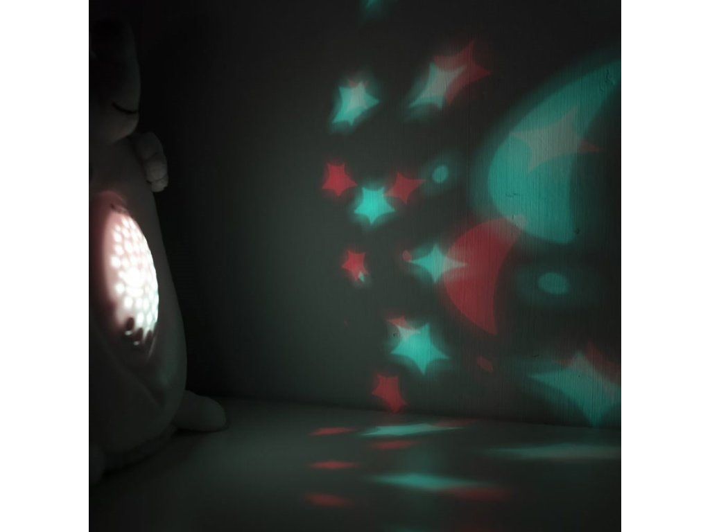 Plyšáčik s projektorom je úžasným pomocníkom pri uspávaní detí. Jeho design je mäkký a pohodlný, ideálny pre malé deti. Zaspávač je vyrobený z mäkkého a príjemného plyšového materiálu. Plyšáčik je vybavený projekčným zariadením, ktoré na stenu alebo strop premieta krásne farebné hviezdičky a mesiac. Zaspávačik má tiež funkciu bieleho šumu, ktorá produkuje pokojný šum, podobný šumu vĺn, dažďa alebo tichého vetra a vytvára relaxačný zvukový podklad pre uspávanie dieťaťa. Okrem bieleho šumu môže zaspávač prehrávať pokojnú a jemnú hudba, ktorá môže byť voliteľne zapnutá alebo vypnutá podľa preferencie. Batérie sa do plyšového zvieratka vkladajú odstránením bruška.