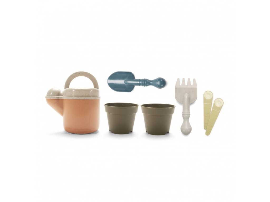 - súprava sa skladá zo 7 dielov - lopatka + hrabličky + kanvička + 2 kvetináče + 2 sádzacie kolíky