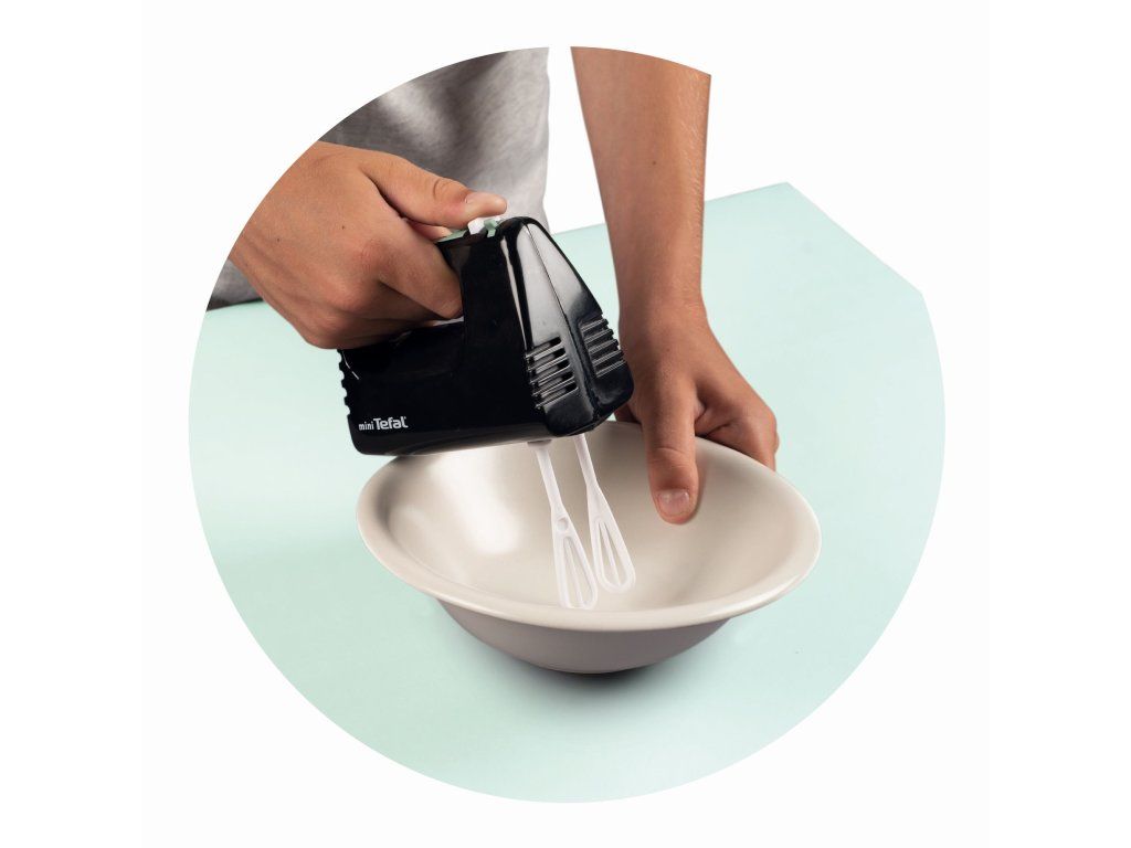 Verná replika ručného šľahača mini Tefal je ideálna do každej kuchynky pri príprave obeda alebo pri pečení. Metličky sa točia mechanicky stlačením tlačidla. Výrobok nevyžaduje batérie. Rozmery (D׊×5V): 11 × 5 × 17 cm.Dodatočné parametre