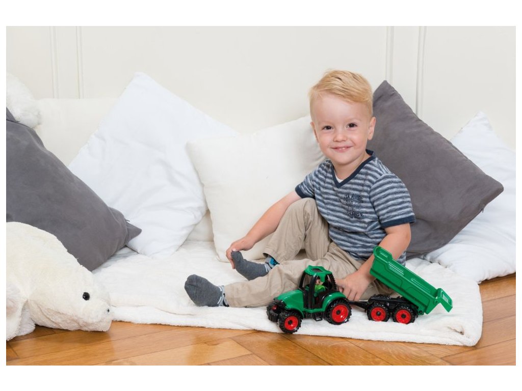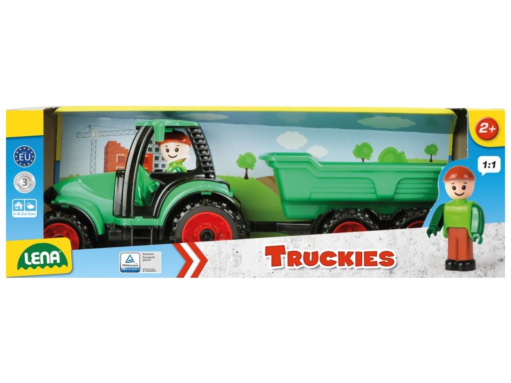 Truckies traktor z kvalitného plastu a veľmi pevnou stavbou. Plne mechanicky funkčný. Obsahuje odklopiteľnú kabínu s aktívnym panáčikom a prípojnou vlečkou.Dodatočné parametre