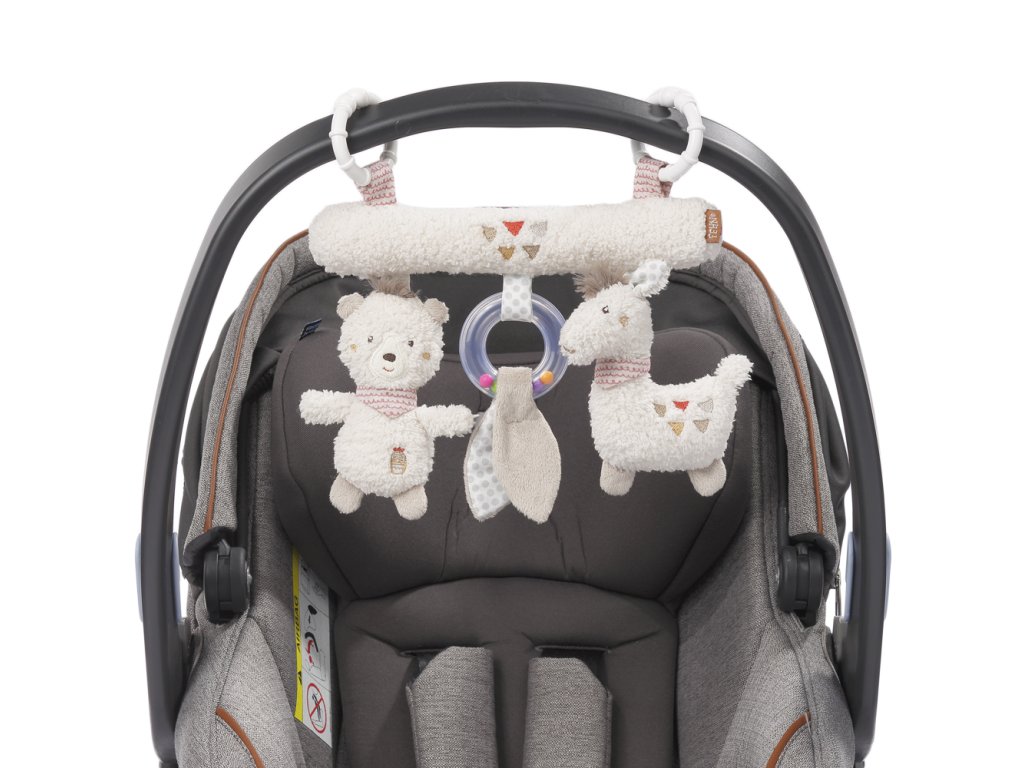 Hrazda na aktivity je ideálnym spoločníkom na vašich prechádzkach. Jednoducho ho pripevnite na rukoväť kočíka a sledujte, ako sa s ním vaše dieťa zabáva. S roztomilými zvieratkami a hrkálkou s farebnými guľôčkami.