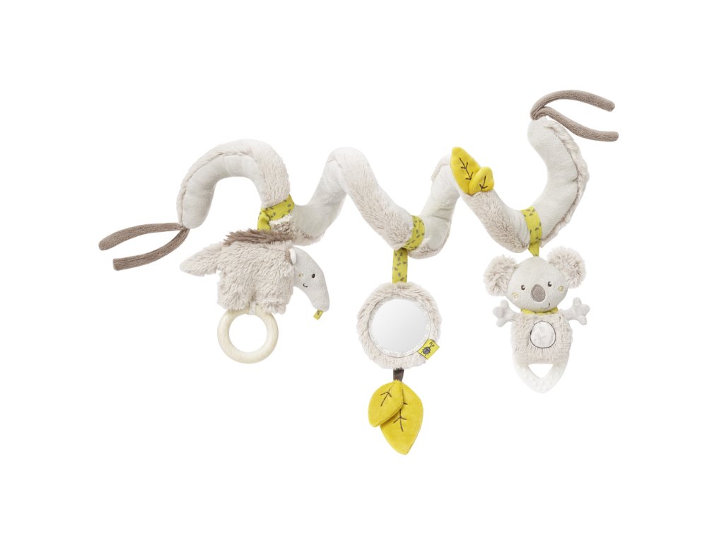 Aktivity špirála Australia je roztomilým doplnkom na hranie pre Vaše zlatíčko. Vďaka svojmu flexibilnému tvaru je možné ju využiť v kočíku, detskej postieľke, na cestách v aute, ale aj všade tam, kde to uznáte za vhodné. Obsahuje niekoľko prvkov, ktoré zamestnajú všetky vnemy dieťatka. Hrkálka zaujme zvedavé detské ušká, zrkadielko láka očká a využitie rôznych materiálov a tiež integrovaného hryzátka, sa postarajú o to, že hračka zamestná naozaj všetky zmysly Vášho maličkého.