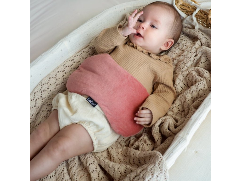 - špeciálne navrhnutý tvar zaisťuje, že sa vankúš rozprestiera po stranách bruška dieťaťa, a tak ho príliš nezaťažuje ani naň netlačí