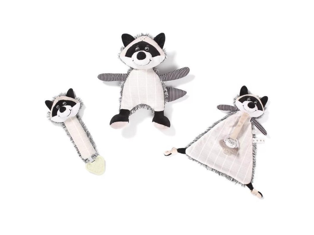 BABYONO Hračka pískacia s hryzačkou mýval Rocky 25x11 cm