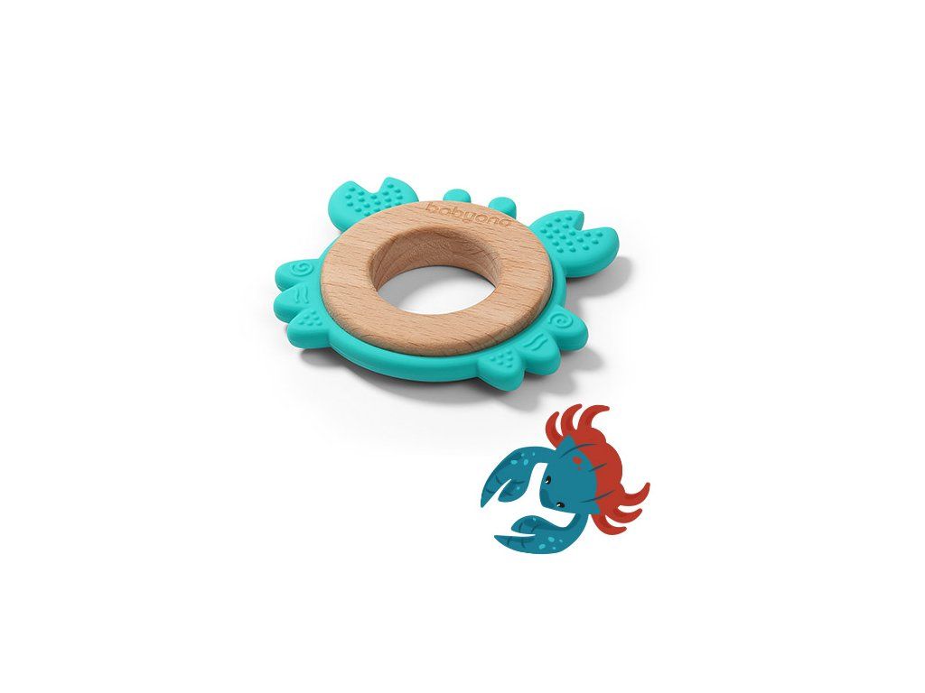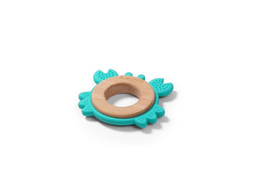 BABYONO Hryzačka dreveno-silikónová Crab
