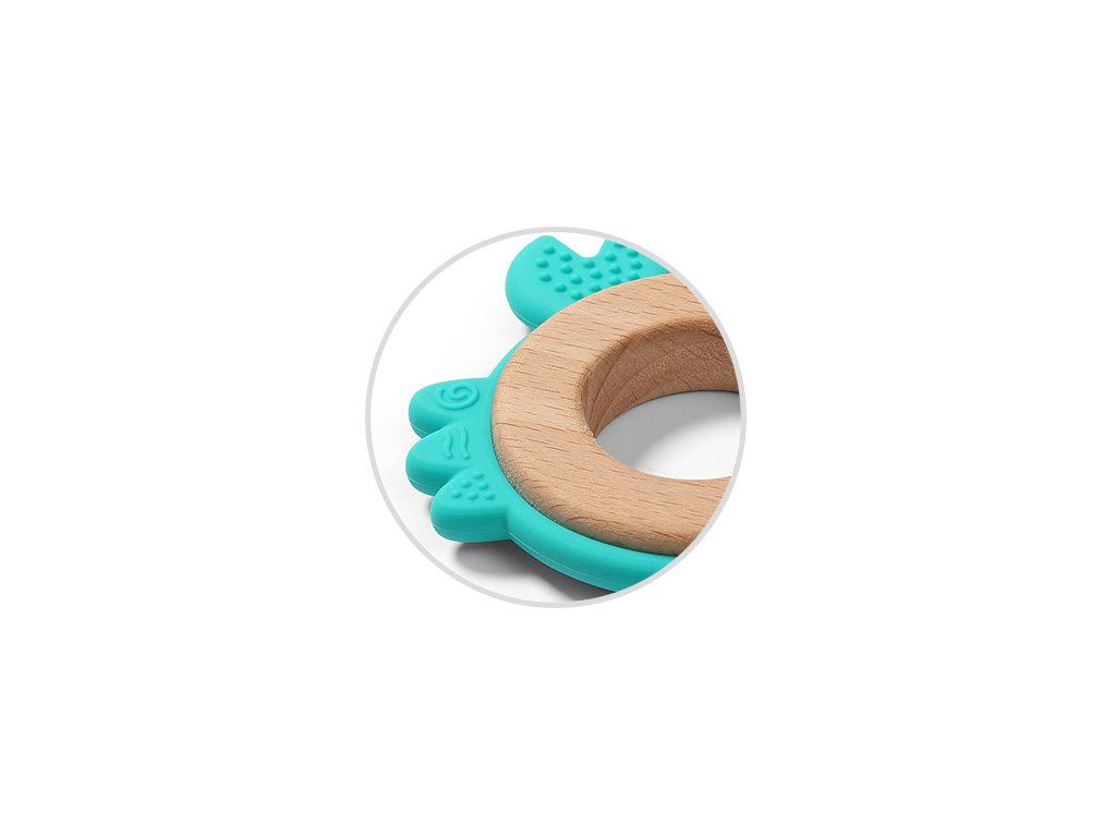 Drevená a silikónová hryzačka plní nielen svoju základnú úlohu, teda uľavuje pri prerezávaní zúbkov, ale vďaka kombinácii bezpečného silikónu a bukového dreva zabezpečuje dieťatku aj rôznorodú zmyslovú stimuláciu.Výstupky na povrchu hryzačky senzoricky stimulujú, pomáhajú pri uchopení a umožňujú aplikovať na ďasná špeciálny gél na prerezávanie zúbkov.