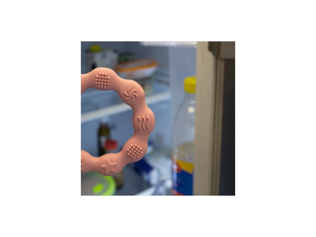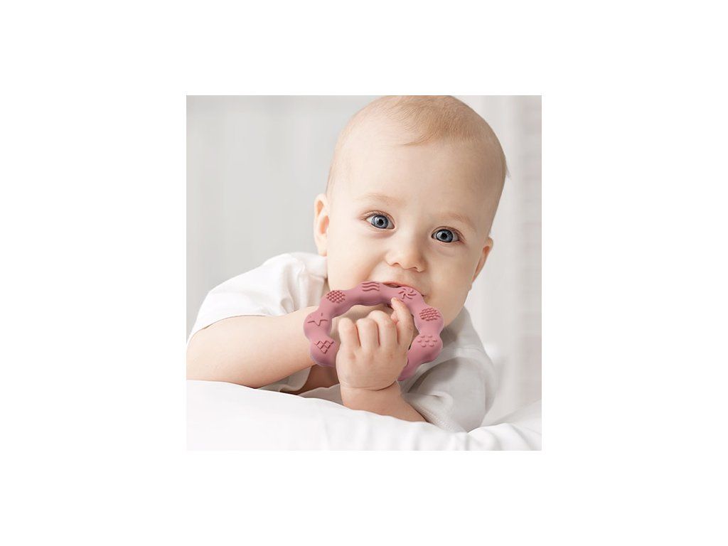 Silikónová hryzačka v tvare kruhu je nenahraditeľnou pomôckou pri prerezávaní prvých zúbkov.Dá sa schladiť v chladničke alebo možno na ňu aplikovať špeciálny gél. Tým pomáha uľaviť pri bolestiach ďasien spôsobených rastom zubov.
