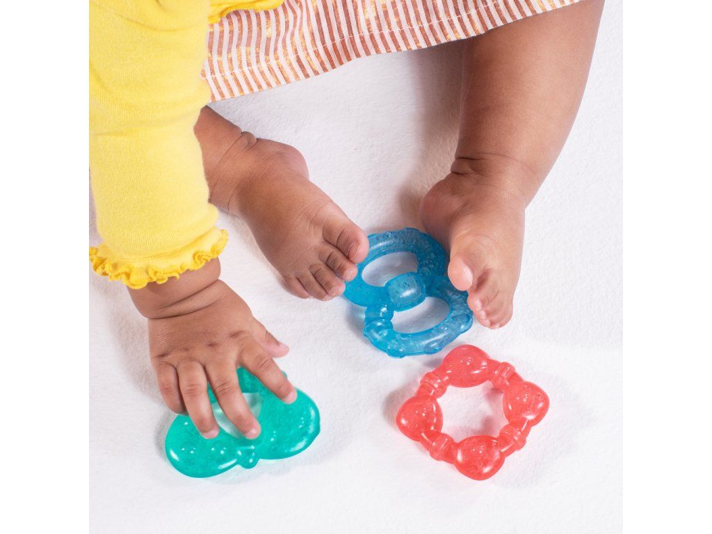 Uľavte svojmu bábätku počas prerezávania zúbkov s chladivými hryzačkami od Bright Starts. Každý z troch farebných krúžkov je naplnený čistou vodou, ktorú môžete schladiť v chladničke pre extra úľavu. Hryzačky majú rôzne textúry a sú navrhnuté pre jednoduché uchopenie malými ručičkami, čo podporuje rozvoj jemnej motoriky a senzorickej stimulácie. Dieťatko ohúria aj žiarivé farby a hryzačky nebsahujú BPA, takže sú mimoriadne bezpečné pre vaše dieťatko.Vlastnosti: