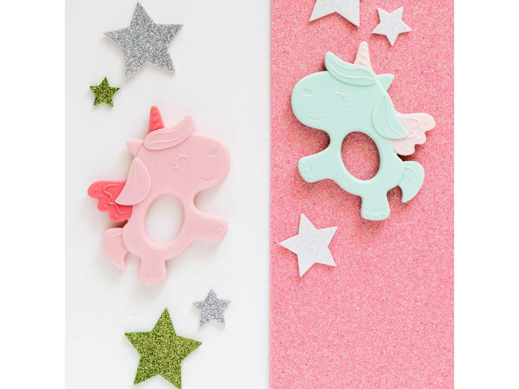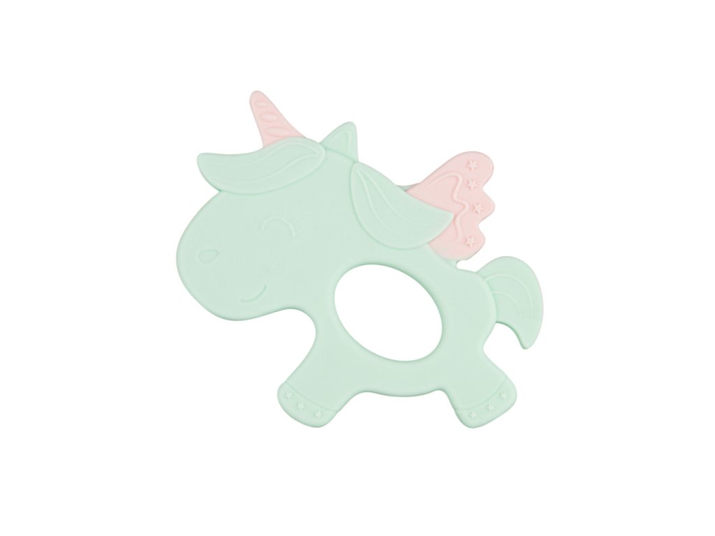 Roztomilá silikónová hryzačka v tvare jednorožca v pastelových trendy farbách je praktickým doplnkom pre najmenšie deti. Pomáha tíšiť bolesť ďasien v období rastu zúbkov. Nerovnomerný povrch pomáha masírovať svrbivé ďasná. Mäkký a pružný, hygienicky nezávadný silikón, zmierňuje bolesť ďasien bez podráždenia. Ľahký a praktický tvar bez ostrých hrán umožňuje deťom pohodlný úchop.