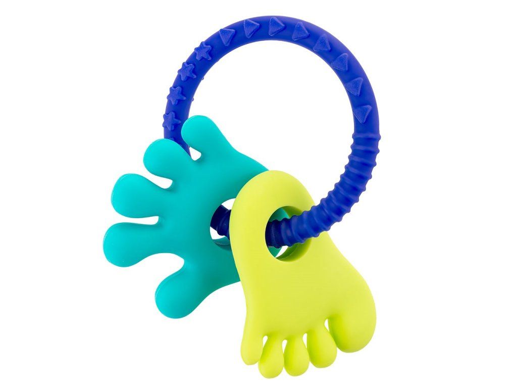 Sada dvoch hryzátok vyrobených z bezpečného silikónu. Špeciálne tvarovaný povrch zabezpečuje jemnú masáž ďasien. Ľahko sa drží v malých detských ručičkách. Po predchádzajúcom schladení v chladničke pomáhajú dieťaťu zmierniť bolesť podráždených ďasien. Moderný dizajn a farby priťahujú pozornosť dieťaťa, rozvíjajú jeho vizuálne a motorické schopnosti. Nemá žiadne ostré hrany. Sú vyrobené z kvalitných, bezpečných a odolných materiálov, ktoré sa dajú ľahko umývať.