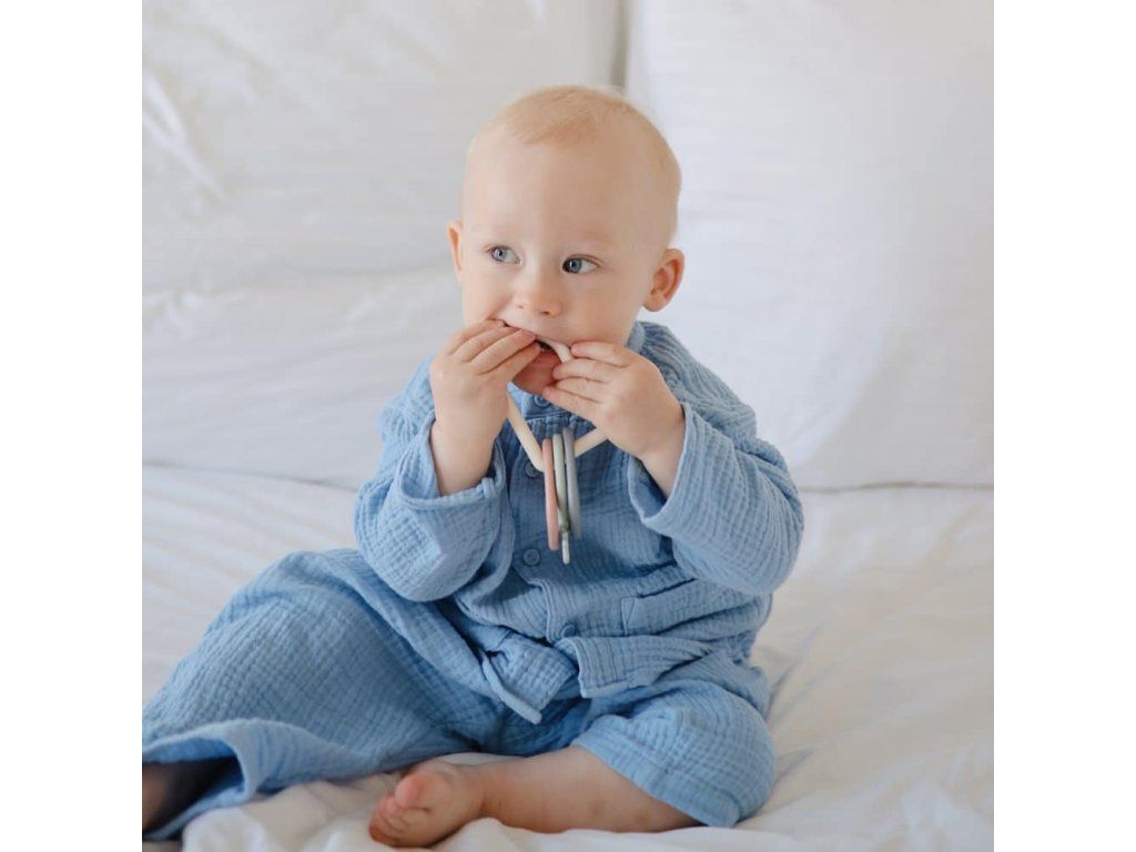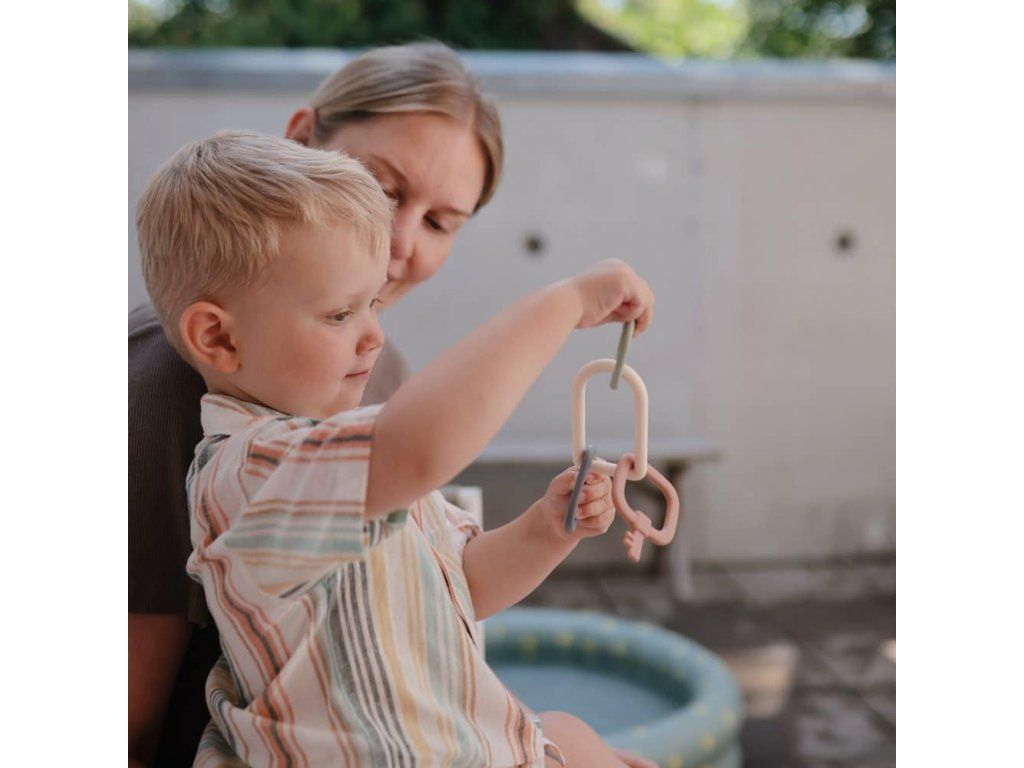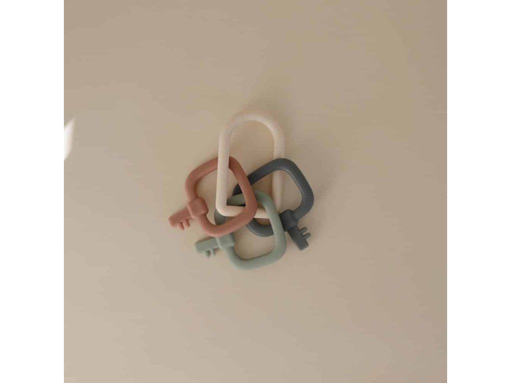 Hračka Mushie’s Key podnieti detskú kreativitu svojím moderným pohľadom na klasickú kľúčovú hračku, ktorá je dostupná v upokojujúcich farbách. Ľahký krúžok na kľúče je navrhnutý pre malé ručičky, aby sa dal ľahko držať a potriasť, pričom vytvára jemný zvuk kliknutia. Vyrobené z odolného PP plastu, ľahko sa čistí a je bezpečné pre ďasná Mushie Key Toy – detaily- Materiál: PP-plast