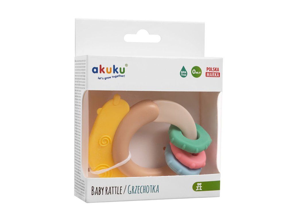 Farebná detská hrkálka s hryzátkom je vďaka svojmu tvaru a veselým farbám u detí veľmi obľúbená a stimuluje rozvoj zmyslov a koordináciu pohybov. Je vyrobená z vysoko kvalitných, bezpečných a odolných materiálov, ktoré možno ľahko umývať. Výška cca 9,5 cm. Určené pre deti od 3 mesiacov.