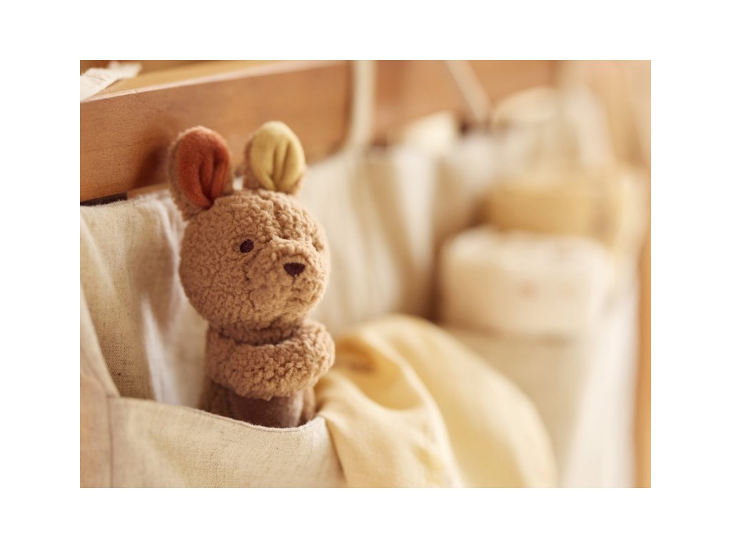 Hrkálka v podobe rozkošného klokana z mäkkého fleece materiálu má tvar pre ľahké uchopenie a pri pohybe jemne hrká.
