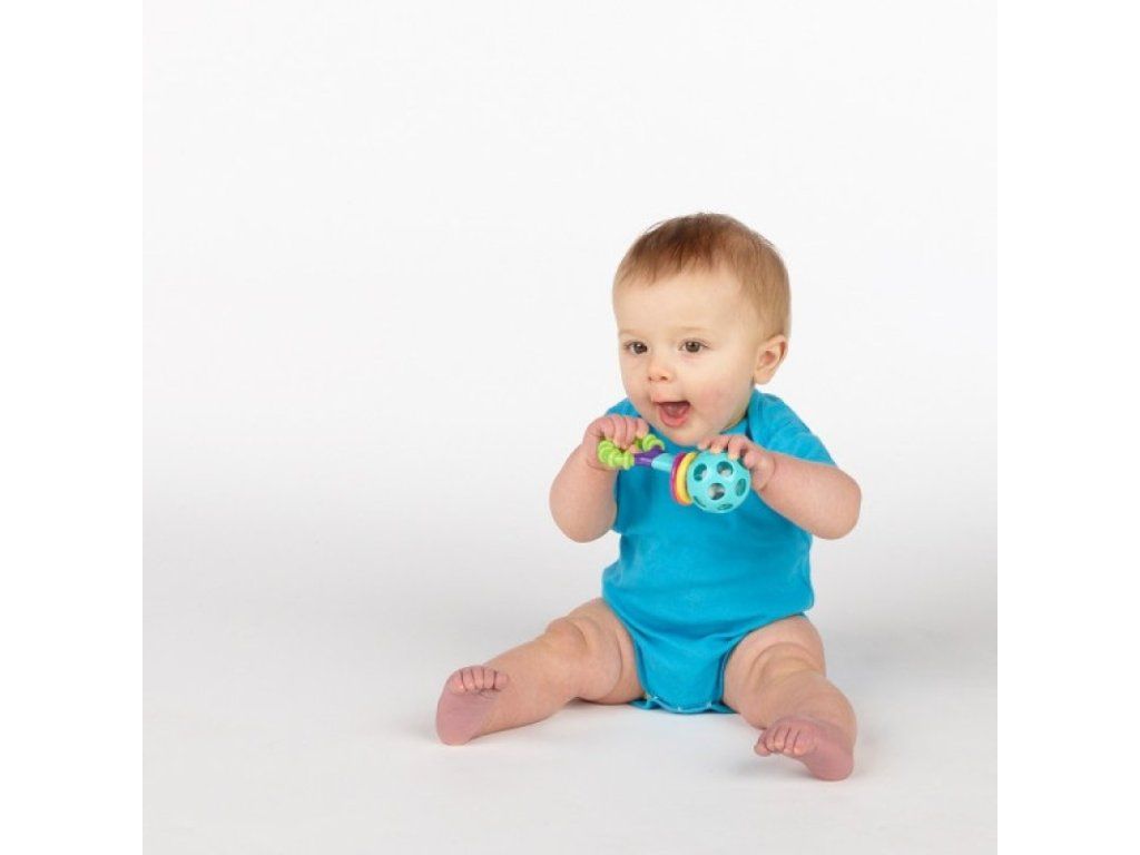 - čierno-biele guličky ukryté v loptičke pri pohybe hrkajú a tým rozvíja zručnosť lokalizácie zvukov