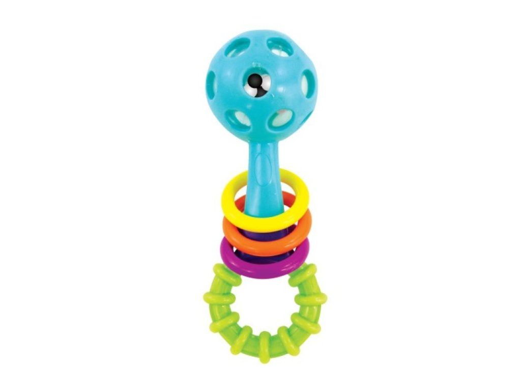 - pestrofarebná hrkálka s krúžkami, ktoré sa pri zatrasení pohybujú