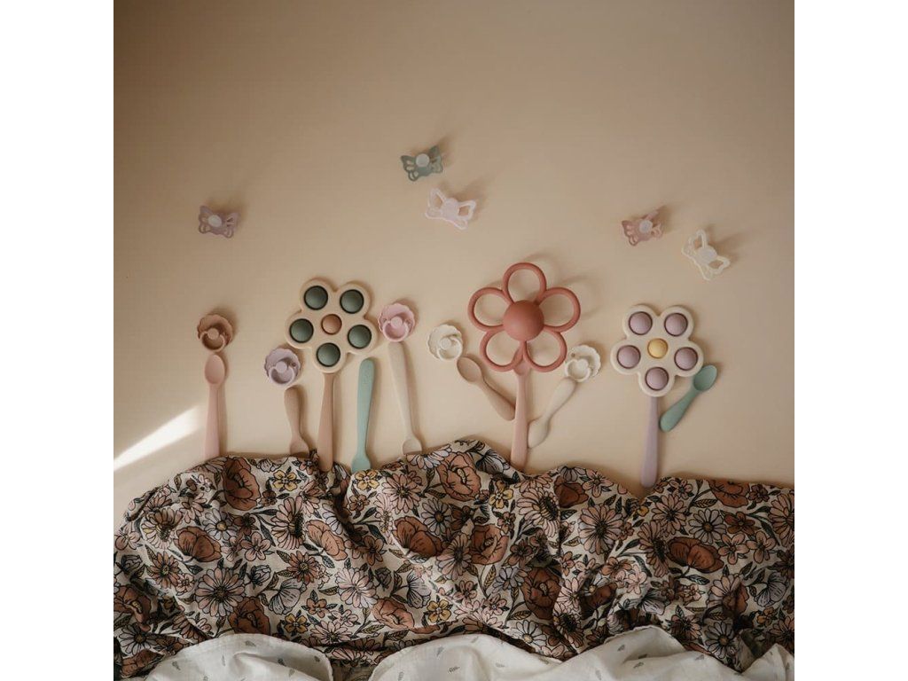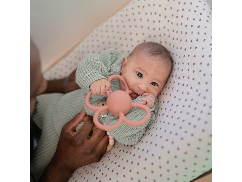 Hryzadlo s hrkálkou Mushie Daisy je inšpirovaný krásnym kvetom sedmokrásky. Hrkálka je zároveň hryzátko, všetko v jednom – hravý dizajn v tvare kvetu stimuluje sluchové zmysly a zároveň je ľahko uchopiteľný drobnými detskými ručičkami a textúrovaný silikónový povrch masíruje a upokojuje podráždené ďasná dieťaťa, keď začínajú vychádzať zúbky. Hrkálka Daisy je vyrobená z netoxického potravinárskeho silikónu, ktorý je úplne bezpečný na žuvanie. Hryzadlo Mushie Daisy – detaily- Odporúčaný vek: 3+ mesiace