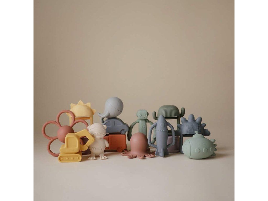 Doprajte svojim malým ratolestiam upokojujúci a zmyslový zážitok s Raketovým hrkatím od Mushie! Hryzátko, inšpirované vesmírom a navrhnuté ako hravá raketa, funguje aj ako hrkálka. Hryzátko nielen upokojí boľavé ďasná spôsobené prerezávaním zúbkov, ale zároveň podnieti zvedavosť detí, pretože ich zoznámi s novými zvukmi. Hrkálka Daisy je vyrobená z netoxického potravinárskeho silikónu, ktorý je úplne bezpečný na žuvanie. Hryzadlo Mushie – detaily- Odporúčaný vek: 3+ mesiace