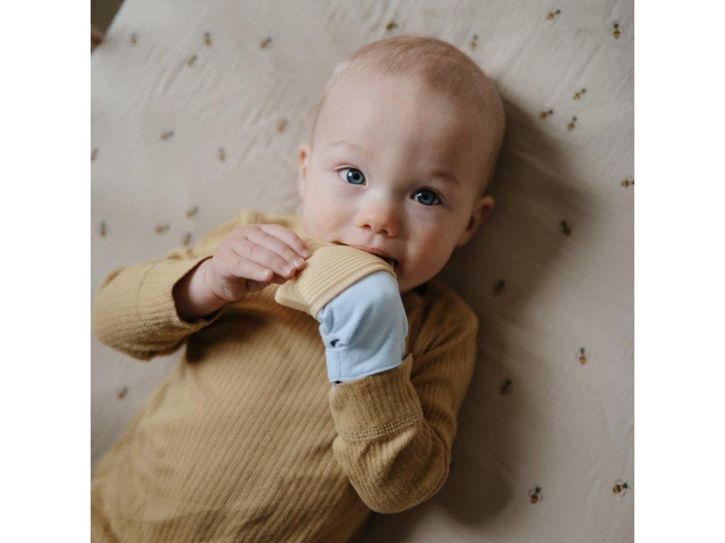 Mushie rukavica s hryzadielkom je ideálnym riešením pre najmenších, ktorí vstupujú do fázy prerezávania zúbkov. Je vyrobená z textúrovaného potravinárskeho silikónu a ponúka jemnú úľavu pre boľavé ďasná, keď bábätká skúmajú nutkanie žuť si ruky. Inovatívny dizajn rukavíc v spojení s nastaviteľným remienkom perfektne poslúži deťom, ktoré si ešte len osvojujú používanie tradičných hryzátok. Zabalené v mäkkej bavlnenej tkanine chráni jemnú pokožku pred nadmerným slinami a zároveň zaisťuje pohodlie. Rukavice bez námahy skĺznu na drobné ručičky a ich jemný zvuk vrások poskytuje dodatočné pohodlie. Mushie Teething Mitten – detaily- Materiály: potravinársky silikón, bavlnená tkanina, vnútorná krčka z PET plastu