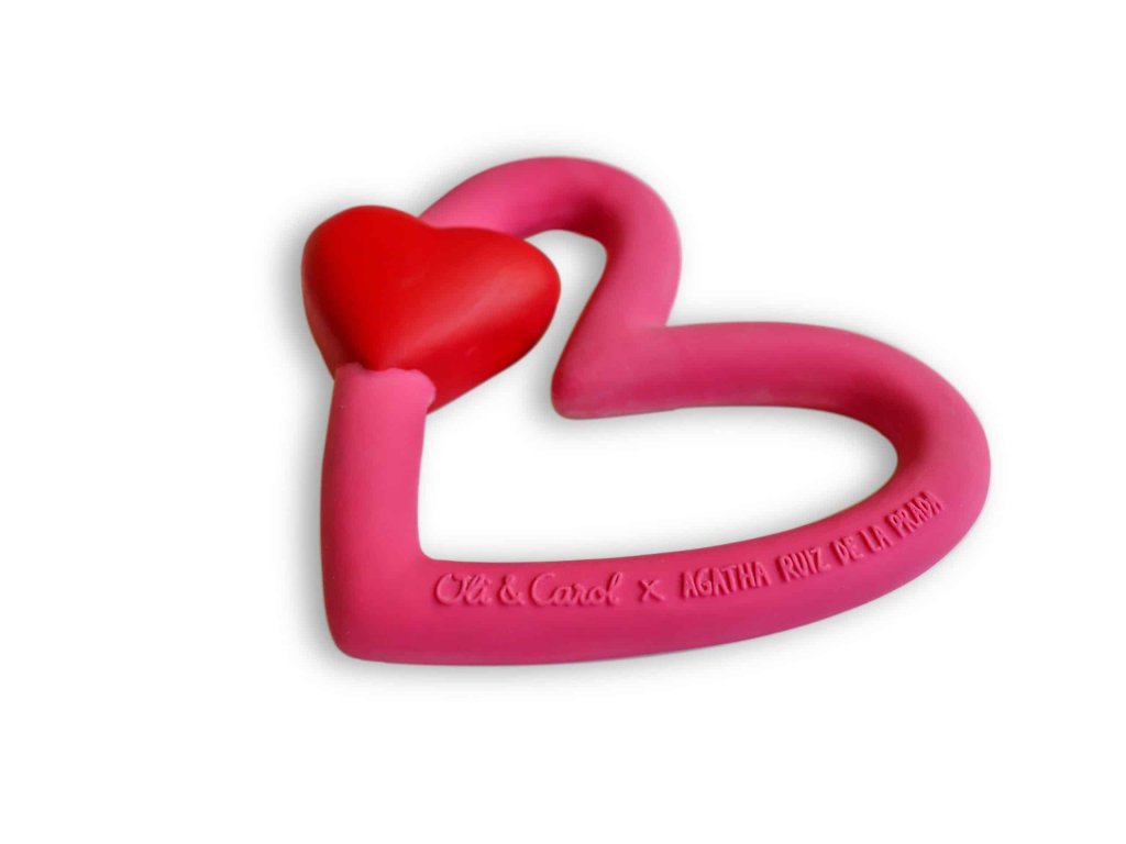 Výsledkom prestížnej spolupráce so španielskou dizajnérkou Agatha Ruiz de la Prada je jedinečné kaučukové hryzátko v tvare srdca, ktoré je zároveň hračkou do vody, senzorickou hračkou, a dokonca aj hryzátkovým náramkom. Symbolizuje lásku a priateľstvo a učí bábätká a deti ako z nás láska k ostatným robí silnejšie a lepšie osobnosti. Zároveň kúpou každej hračky Oli&Carol x Agatha Ruiz de la Prada venujeme 10 centov na liečbu rakoviny u detí. Žiadne otvory = Žiadne baktérie a plesne = Jedinečná, štýlová a bezpečná hračka • vyrobené zo 100% prírodného kaučuku zo stromov Hevea, ručne farbené rastlinnými prírodnými potravinárskymi farbivami, • biologicky rozložiteľné, trvalo udržateľné a priateľské k životnému prostrediu. Netoxické, bez obsahu PVC, BPA, ftalátov a dusičnanov, • antibakteriálne a hygienické – hračky nemajú žiadne otvory, čím je vylúčená prítomnosť baktérií a plesní vo vnútri hračiek, • sú flexibilné a jemné, ľahko uchopiteľné, stlačiteľné a bezpečné na hryzenie (upokojenie ďasien pri raste zúbkov), • vhodné ako hryzátko, hračka do vody, senzorická hračka na rozvoj zmyslového vnímania aj ako dekoratívny predmet. Stimulujú detské zmysly a upokojujú ďasná pri prerezávaní zúbkov. • dokončované ručne, s dôrazom na detail. Vzhľadom na použitie prírodného kaučuku sa môžu objaviť drobné odchýlky vo farbe a tvaroch. Čistenie a starostlivosť: • Na čistenie použite mydlovú vodu a vlhkú tkaninu. • Uchovávajte na suchom mieste, po použití vo vode hračku vysušte. • Nenechávajte hračku dlho na priamom slnečnom alebo silnom umelom svetle, farby môžu vyblednúť. • Naše hračky sú 100% prírodné, drobné odchýlky v tvare a farbe sú normálne. • Nesterilizovať.Dodatočné parametre