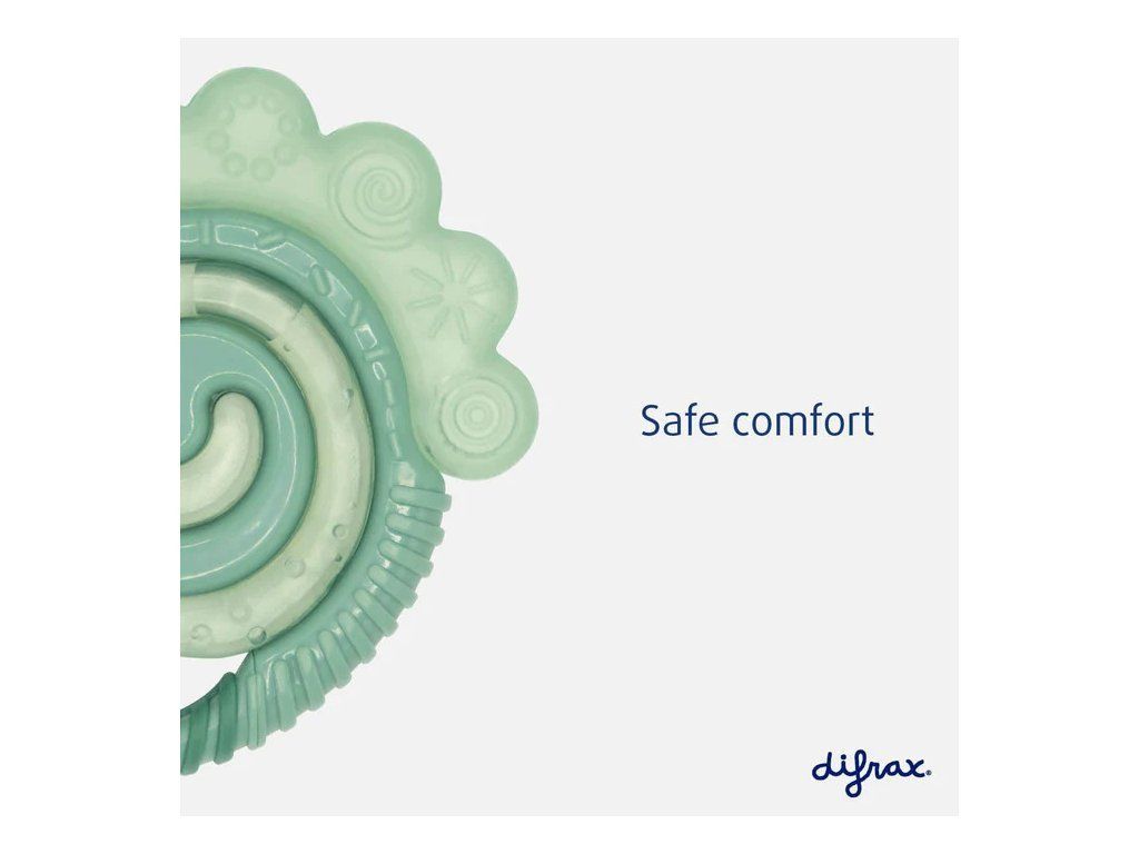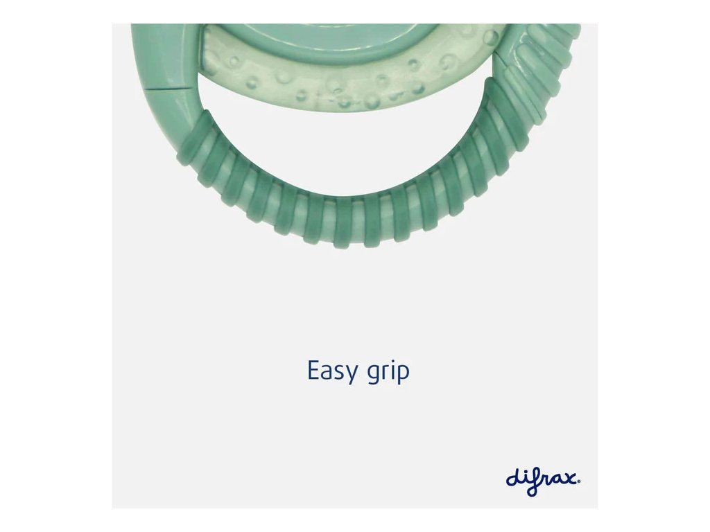 Hryzátko Difrax je pre dieťatko jednoducho uchopiteľná hračka. Čiastočne je vyplnené sterilizovanou vodou, je teda úplne bezpečné. Hryzadlo môžete schladiť v chladničke (nie v mrazničke) zhruba na pol hodiny. Hryzadlo okrem úľavy od bolesti napomáha aj správnemu rozvoju čeľusti a podporuje optimálnu ústnu starostlivosť. Pred každým použitím opláchnite hryzadlo prúdom teplej vody.