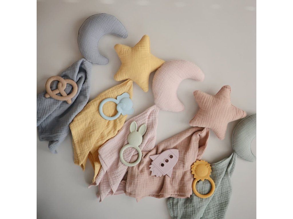 Hryzátko Mushie je navrhnuté tak, aby poskytovalo maximálne pohodlie a úľavu počas náročného obdobia prerezávania zúbkov.