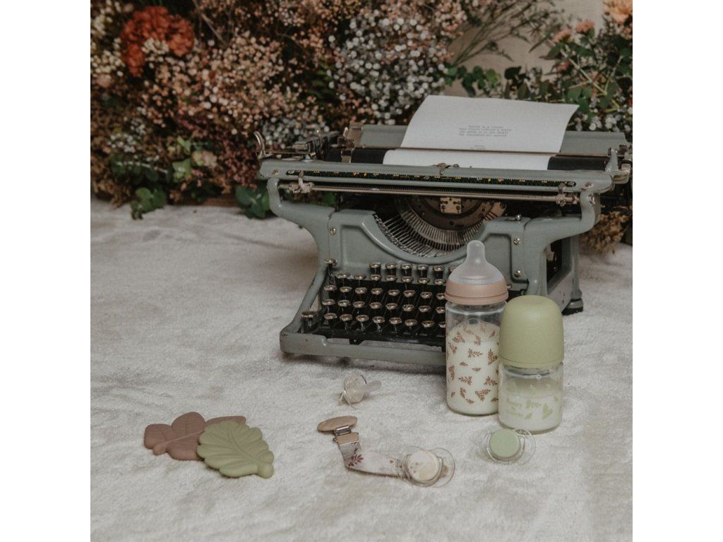 Hryzátko v tvare listu s drobnými výstupkami pre úľavu detských ďasien. Evolučné hryzátka sú bezpečné, ergonomické, ľahké a veľmi zábavné.