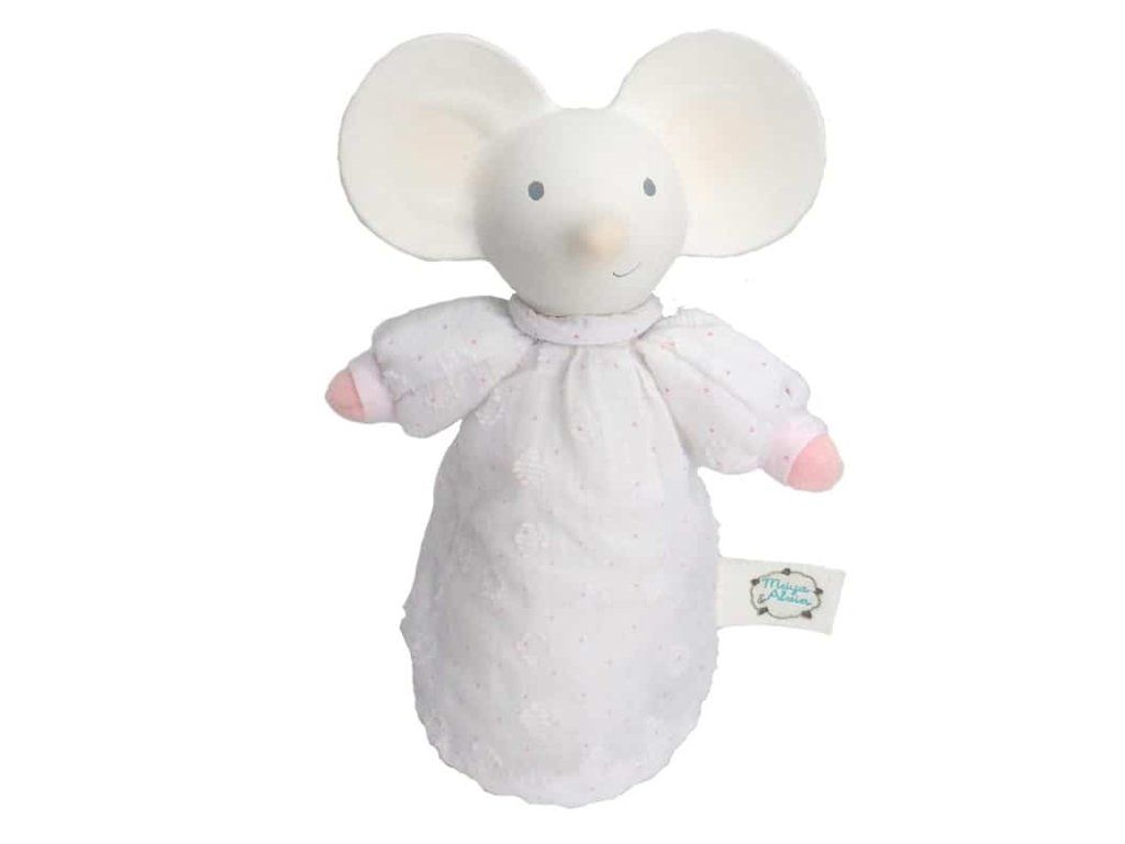 Hračka z kolekcie Meiya&Alvin je kombináciou pískatka z príjemne mäkkej certifikovanej bavlny a hryzátka z prírodnej gumy z kaučukového stromu Hevea. Kombinuje úžitok zvukovej stimulácie pískatka a gumennej časti, ktorá je ideálna pre deti, ktorým sa práve prerezávajú zúbky. Jedinečná vôňa a chuť prírodnej gumy je u detí veľmi obľúbená. Mäkkšie aj tvrdšie časti a výstupky masírujú detské ďasná a prinášajú úľavu a ukľudnenie. Vytváraním zvuku deti objavujú svoje zmysly a učia sa základné lekcie ich vlastnej aktivity a následnej reakcie. Bezpečné pre novorodencov aj batoľatá Poskytuje zvukovú stimuláciu a emocionálne ukľudnenie Jedinečná vôňa a chuť prírodnej gumy, tak veľmi obľúbená u detí Ideálne pri prerezávaní zúbkov Jednoduché uchopenie Certifikovaná bavlna, prírodná guma šetrne získaná z kaučukového stromu Hevea a výplň z recyklovaných PET fliaš Ručne maľované bezpečnými farbami na rastlinnej báze Bez BPA, PVC, ftalátov a iných nebezpečných látok Testované podľa EU noriem Balenie z recyklovaného materiálu potlačené farbami so sójovým základom Všetky produkty Meiya&Alvin sú vyrobené s ohľadom na životné prostredie. Vieme, že rešpektovať životné prostredie znamená rešpektovať celú našu planétu, ktorú tak chránime pre ďalšie generácie.Výška cca 17 cm.Vyrobené na Srí Lanke vo fair trade podmienkach.Dodatočné parametre