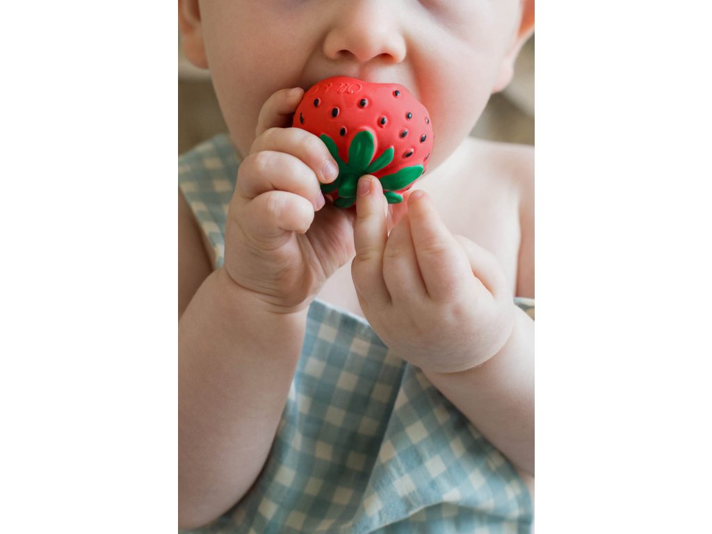 Sweetie the Strawberry je mini hryzátko s ergonomickým dizajnom pre novorodencov. Vďaka jeho vyvýšeným bodkám a detailným textúram je pre najmenších veľmi príjemné upokojiť ďasná, ktorými sa prerezávajú prvé zúbky. Žiadne otvory = Žiadne baktérie a plesne = Jedinečná, štýlová a bezpečná hračka S praktickým otvorom pre upevnenie na šnúrku