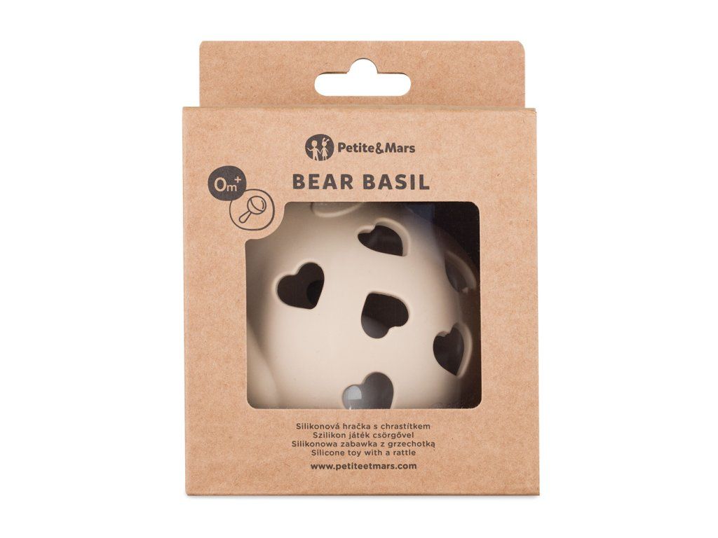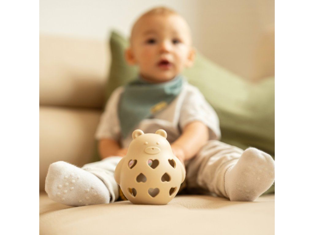 PETITE&MARS Hračka silikónová s hrkálkou Bear Basil Desert Sand 0m+
