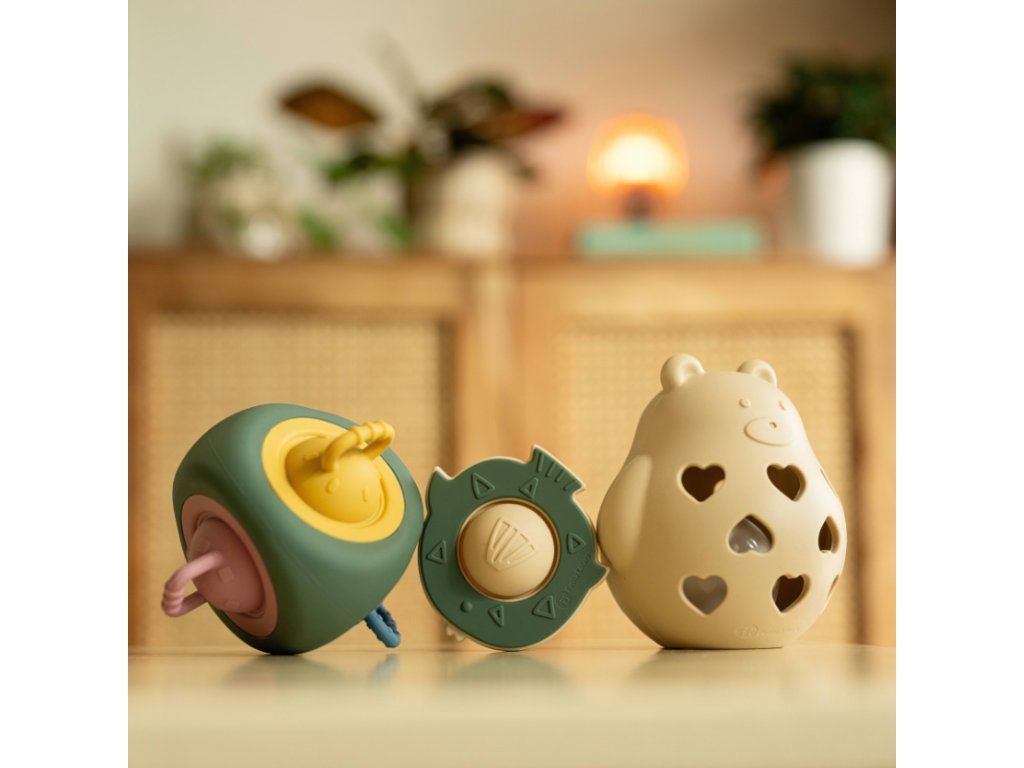 Pestré textúry na povrchu stimulujú hmat a podporujú zmyslový rozvoj dieťatka. Hrkálka Bear Basil zároveň podnecuje dieťatko ku hre a manuálnym aktivitám, ktoré sú veľmi dôležité v prvých mesiacoch života.