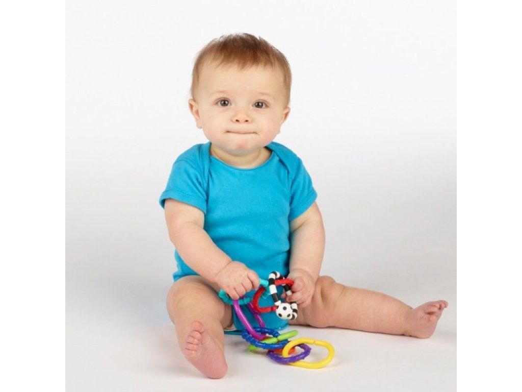 - kontrastný, čierno-biely krúžok priťahuje pozornosť dieťaťa a podporuje jeho schopnosť sústrediť sa
