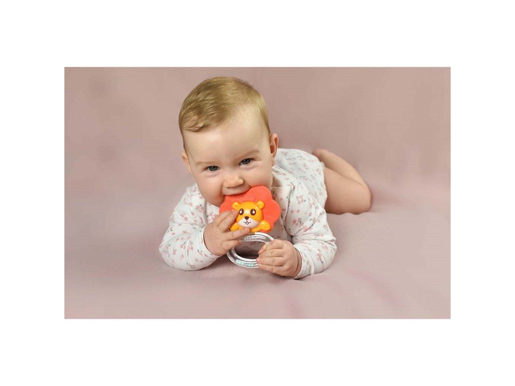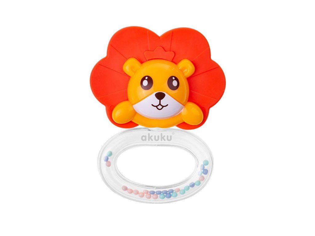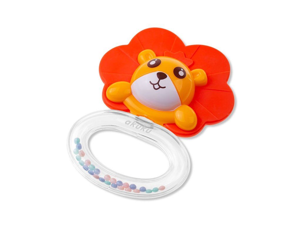 Silikónové hryzátko s hrkálkou Akuku Lev - 44403