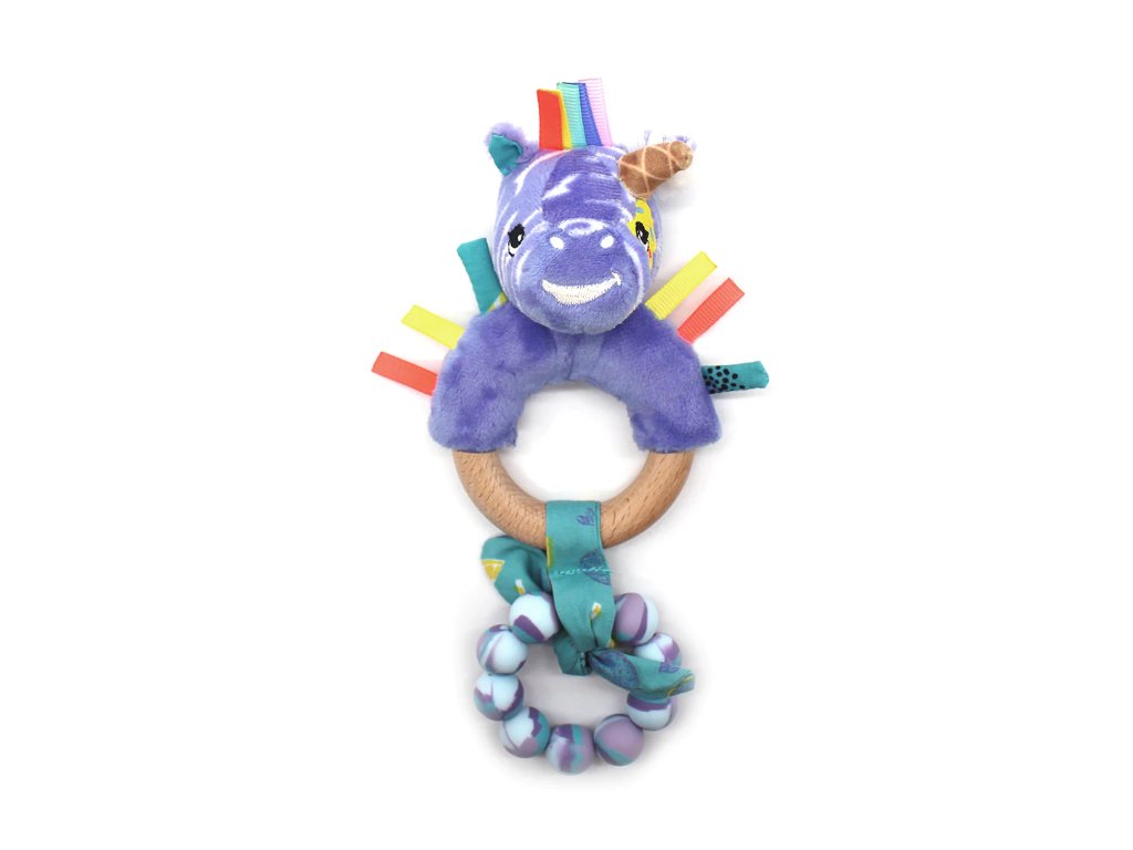 Silikónové hryzátko Zebra Spojenec pri prerezávaní zúbkov Silikónové hryzátko Zebra tvoria farebné guľôčky na hryzenie, ktoré bábätku uľavia od bolesti pri prerezávaní prvých zúbkov. Hryzátko je doplnené dreveným krúžkom pre ľahké uchopenie a veľmi mäkkou plyšovou zebrou. Je odnímateľné, takže namiesto hryzátka môžete na krúžok zavesiť cumlík.Trendové a kvalitné kolekcie Les Déglingos obmieňajú svoje kolekcie, vzory a látky, aby ponúkali stále jemnejšie a kvalitnejšie produkty. V novej kolekcii vždy nájdete konkrétne zvieratko v podobe plyšáka, maznáčika, senzorickej hračky, batožiny a iných doplnkov.Dodatočné parametre