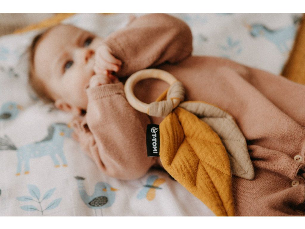 Drevené hryzátka T-TOMI vznikli spojením dvoch materiálov, dreva a látky. Roztomilé, ale pritom funkčné hračky, ktoré Vaše bábätko nielen nadchnú, ale stanú sa aj skvelým pomocníkom pri bolestivom prerezávaní zúbkov. Sú prirodzenou alternatívou plastových hryzátok. Pri hraní s dreveným krúžkom si deti tiež precvičia jemnú motoriku. Jemný mušelín v BIO kvalite priamo nabáda k „ponufaní“.Hladko brúsené, nelakované drevo je príjemné na dotyk, teda bezpečné pre malé deti.