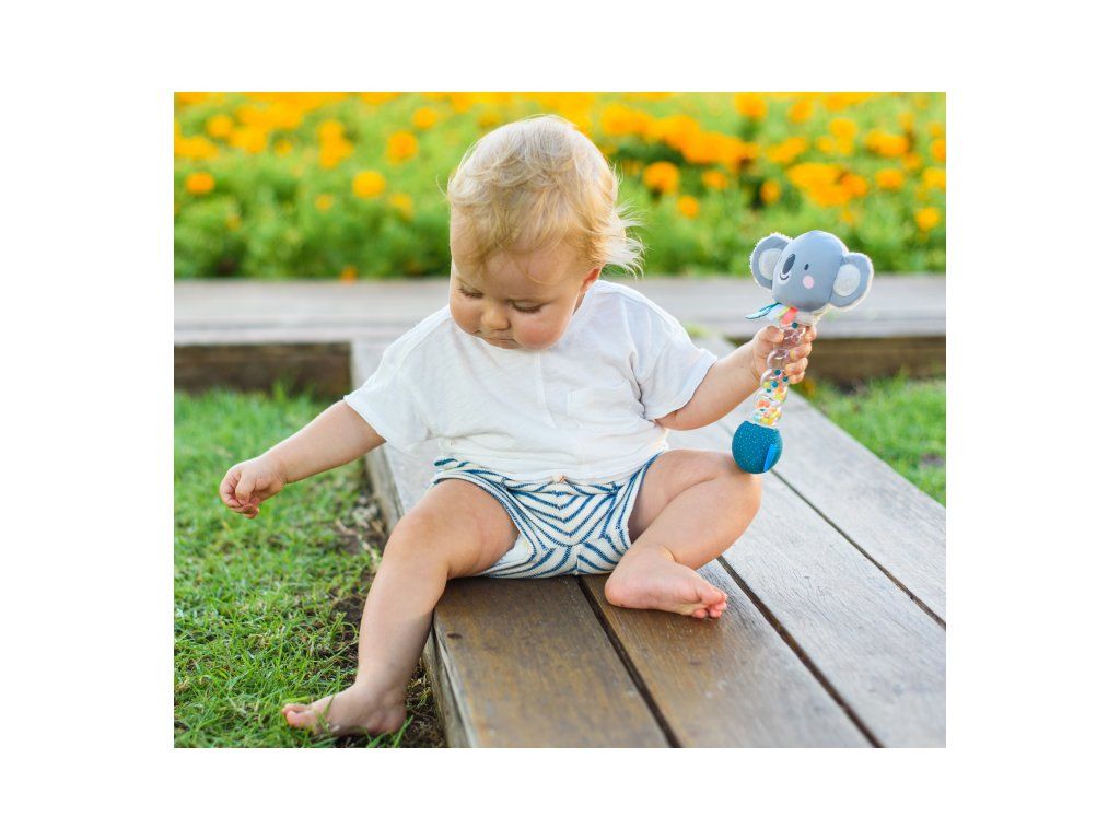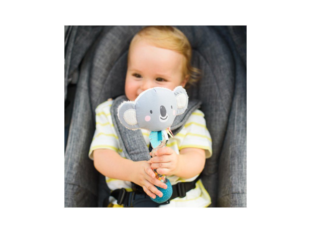 Hrkálku tvorí mäkká plyšová hračka v tvare usmievavého medvedíka koaly a priehľadné plastové držadlo naplnené farebnými korálkami. Upokojujúci zvuk presýpajúcich sa korálikov pripomína zvuk padajúcich kvapiek dažďa.
