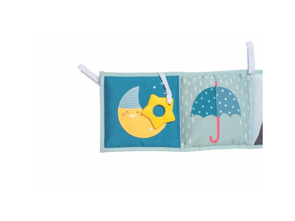Obojstranná textilná knižka pre najmenších je určená do kočíka, postieľky aj na hraciu deku.