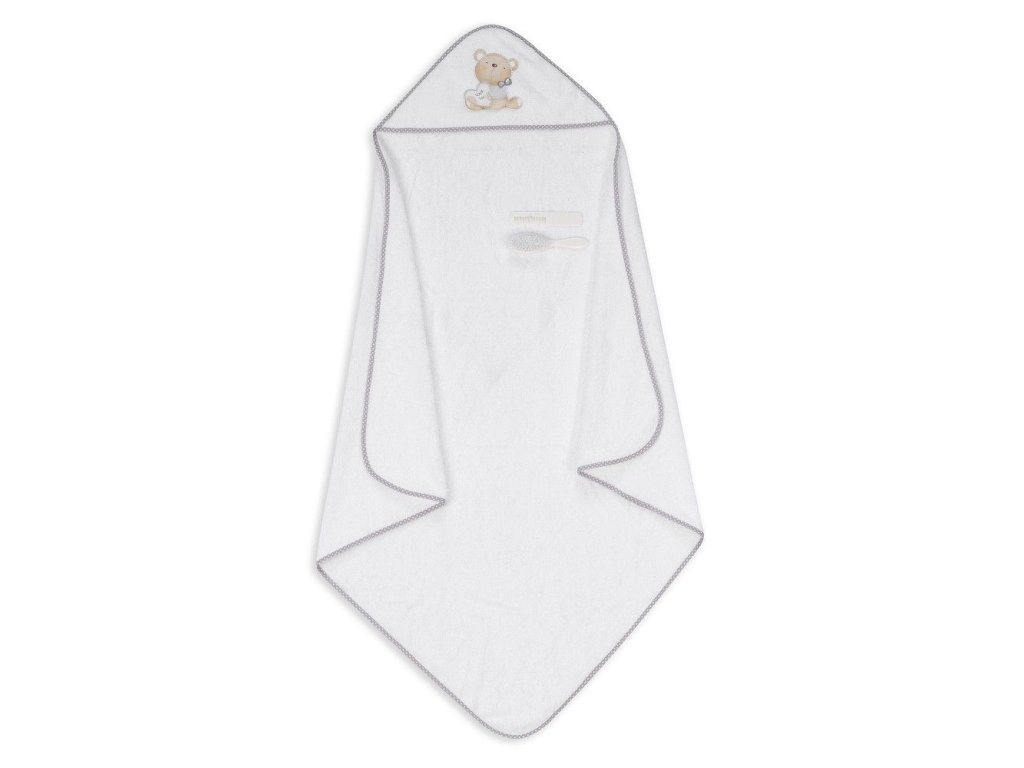 INTERBABY | OSUŠKA froté MEDVÍDEK LOVE + KEFA - bielo/sivá