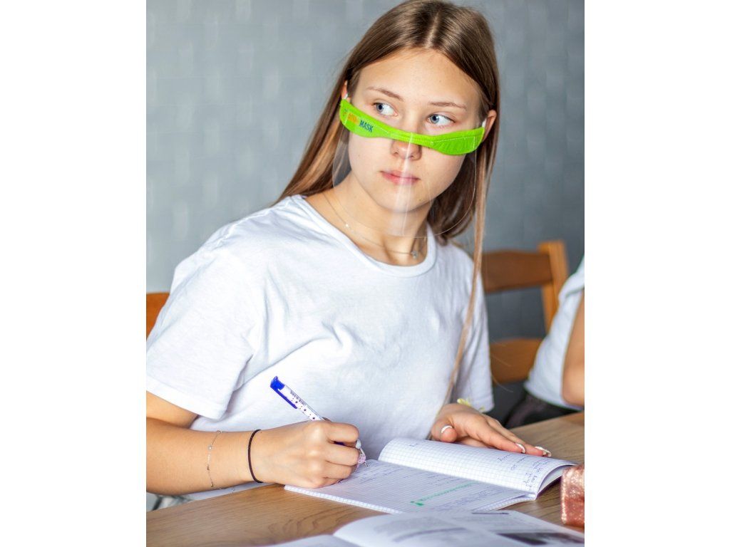 Mini ochranná maska.Je to vynikajúce riešenie pre školopovinné deti ale aj na prácu v obchodoch, reštauráciách, bankách a kanceláriách. Opakovane použiteľná mini ochranná maska s ergonomickým tvarom a tesne priliehajúca k tvári. Vyrobené z mäkkého flisu a tenkého priehľadného PVC. Detská veľkosť - kratšie gumičky na uchytenie.